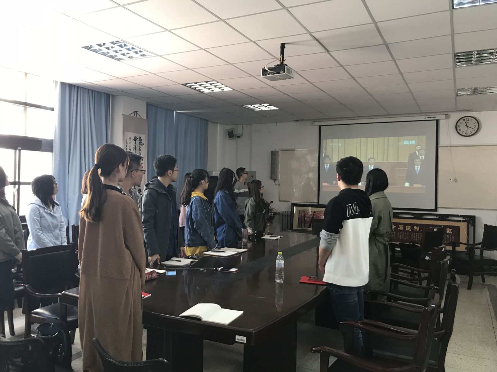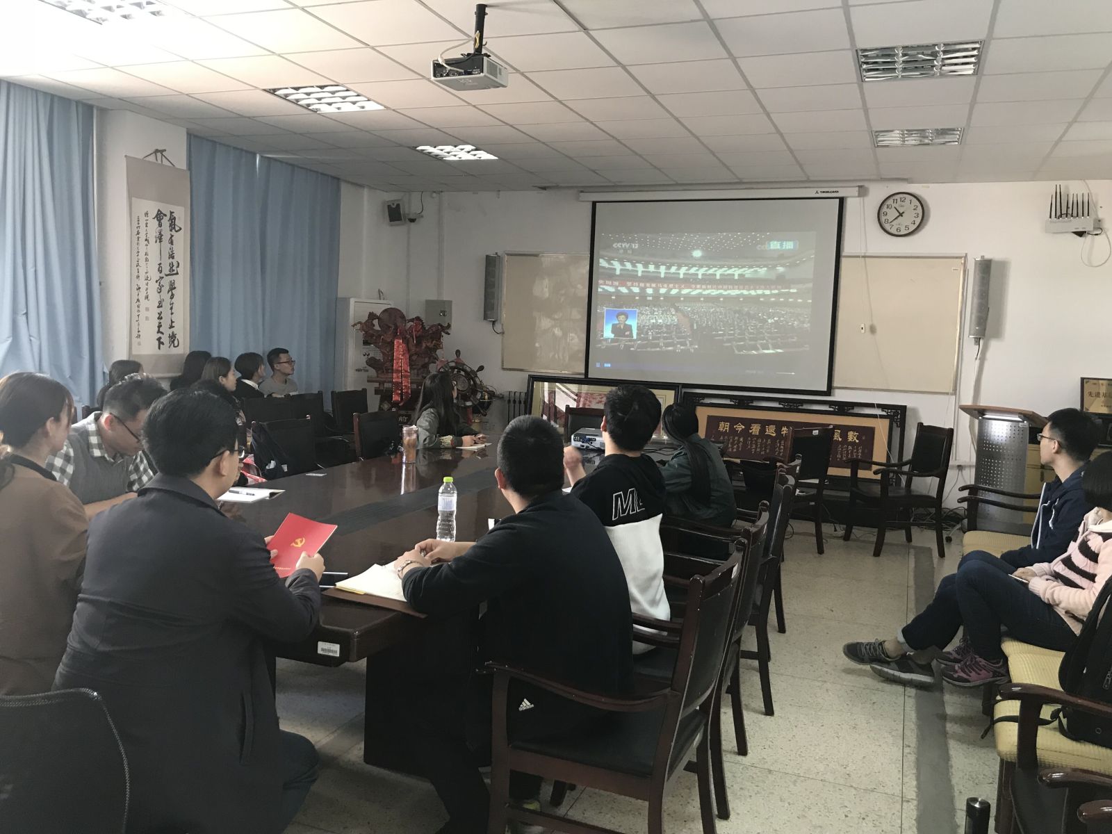 本站讯 5月4日上午十时,我院组织学生党员于图东环楼208室集中收看纪念马克思诞辰200周年大会,认真聆听习近平总书记在纪念大会上的重要讲话。辅导员赵德豪、王祎璠一同观看。