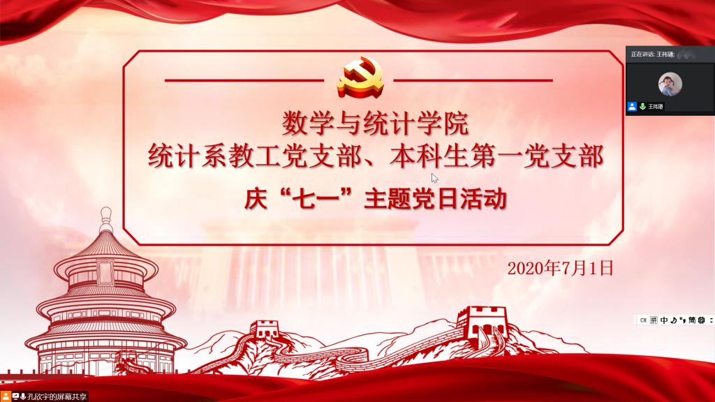 本站讯 为庆祝中国共产党成立99周年,讲述抗疫故事,领悟初心使命,7月1日下午,我院本科生第一党支部与统计系教工党支部通过腾讯会议联合开展了庆“七一”主题党日活动。taptap点点体育党委副书记王鹏飞应邀出席,活动由本科生第一党支部书记王祎璠主持。
