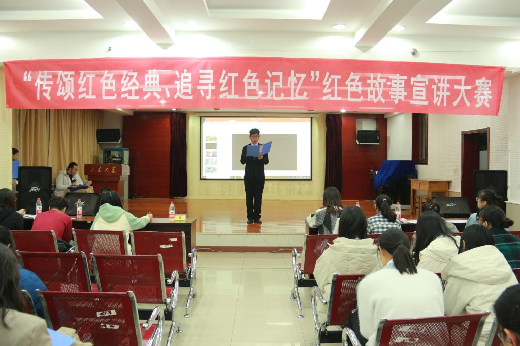 本站讯为推动“青春心向党,建功新时代”学生党员教育的深入落实,进一步弘扬红色革命精神、汲取信仰力量,11月21日下午,taptap点点体育于文泰苑518室举办“传颂红色经典,追寻红色记忆”红色故事宣讲大赛。学院团委书记孙磊、本科生党支部书记王祎璠及6名正式党员担任评委,2017、2018级党员及入党积极分子观看了比赛。