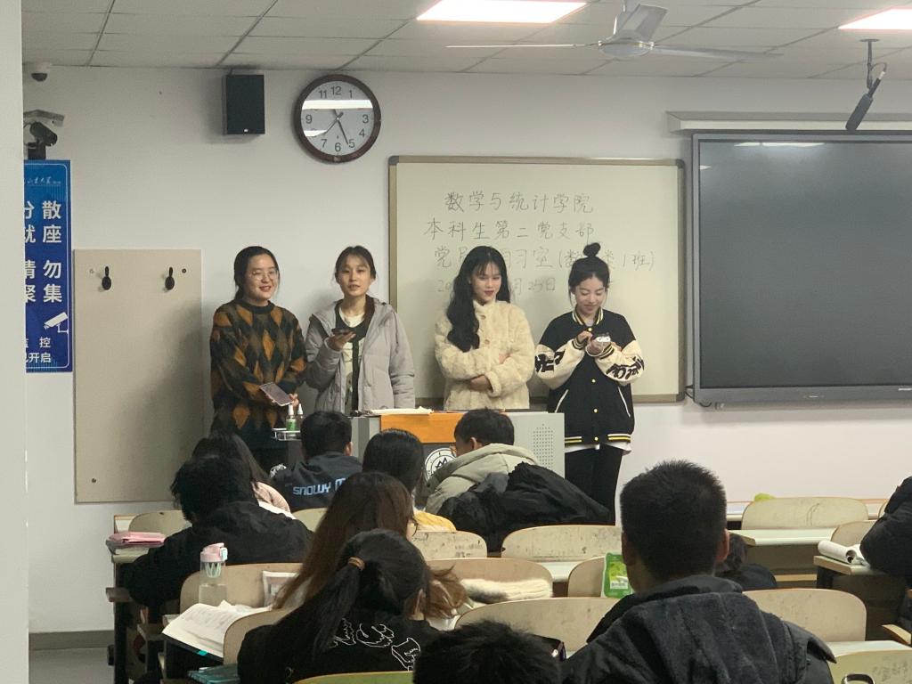 此次活动中,党支部书记孙磊将党员同志分成四个小组,由2018、2019级的学生党员负责具体实施,分别走进2021级数学类四个班级自习室,从政治思想引领、专业学习、生活作风、卫生纪律和心理状况等方面为大一新生答疑解惑。前期,各小组通过在线表格统计了各班新生在学习、生活等各个方面的问题与疑惑;在活动中,党员同志围绕各班提出的问题进行答疑,从党建教育、专业学习、科研竞赛、实践服务等方面进行了经验分享,并为新生详细介绍了入党流程和入党基本要求,勉励新生从各方面努力提高自己,锻炼自己。李明威同志通过讲解优秀党员事迹,介绍身边的优秀党员模范,告诉新生入党是一个长期的过程,需要始终保持初心,并希望同学们可以用实际行动早日向党组织靠拢,早日站在党旗下。尹爱华分享了自身的科研经历,鼓励新生要学好专业知识,树立创新意识,不断提升自身的科研素养;卢晓燕同志结合自身学习经验,勉励新生把握好大一的学习生活,提前安排好自己的目标与计划,在学好专业课的同时也要注重全面发展。本次活动现场气氛热烈,各位党员同志准备充分,全方位解答了同学们的困惑,各班新生纷纷表示收获良多。