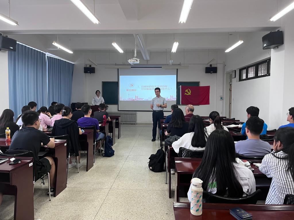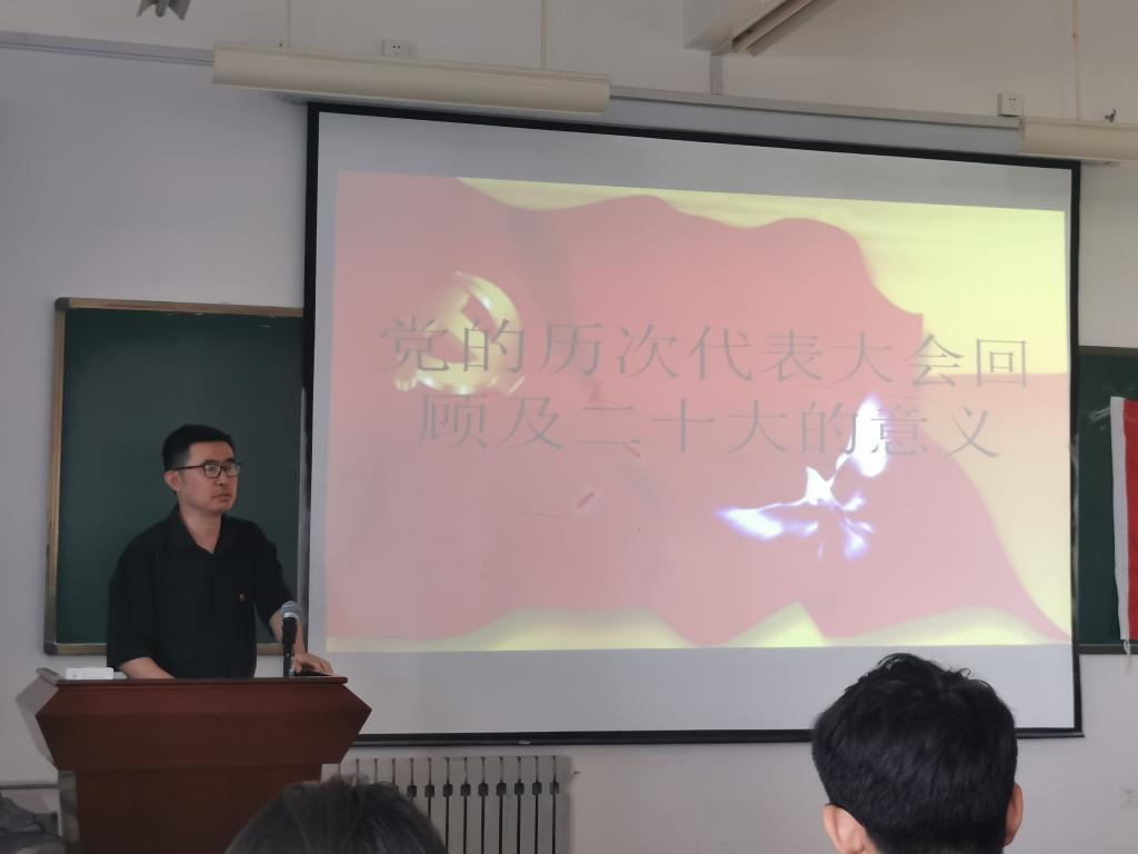 活动伊始,魏佳佳介绍了到场老师和活动主题。随后,本科生第二党支部书记孙磊从中国共产党全国代表大会是我国最高领导机关、中国共产党全国代表大会是党光辉历史的决策者与见证者、历次会议的内容及党章的修订、我们当前面临的形势四个方面分享了自己的学习感悟。紧接着,全体党员集中观看视频《喜迎党的二十大——以史为鉴,再创未来》,再次回顾了建党以来我国经历的重要历史事件,并对中共一大召开以来印象最深的内容展开讨论。其中,公共数学教学部教工党支部赵华祥向与会党员分享了自己儿时生活条件艰苦的经历与十一届三中全会后中国的变化,使同学们对我国的发展史感受更加深刻。随后,本科生第二党支部韩林轩、王肖晴、王鹏宇从世纪疫情、计划经济与市场经济等角度依此发表自己的观点。随后,我院党委书记于振涛、公共数学教学部教工党支部书记穆增超总结本次活动,强调联合主题党日活动是师生党员沟通想法的有效途径,鼓励青年人在学习专业知识的同时也要提高自身修养,在问题前能够站出来,推动民族的发展。