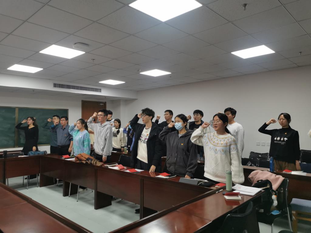 活动最后,党员代表陈嘉呈同志带领与会党员重温入党誓词,铿锵的誓言彰显着支部党员的决心和态度,将深入学习,不负使命,争做党的二十大精神的坚定信仰者、有力传播者和忠实践行者。