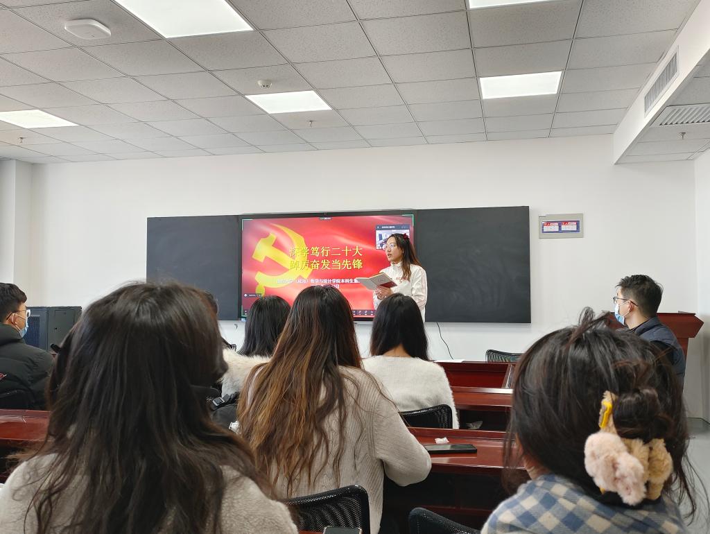活动伊始,与会党员一起观看学习视频,从坚持全面依法治国、推进文化自信自强、增进民生福祉三个方面深入学习二十大报告。随后,党支部组织委员魏佳佳从中国式现代化切入,分析中国式现代化的现实逻辑、丰富内涵和世界意义,增强学生党员的理论素养。教师党员王紫山结合生活中的例子作为补充,使理论更贴近生活,通俗易懂。最后,各位党员结合日常生活中的真实案例和学习视频后的感悟,从文化自信、科教兴国、人才强国等许多方面分享交流学习心得,各抒己见。