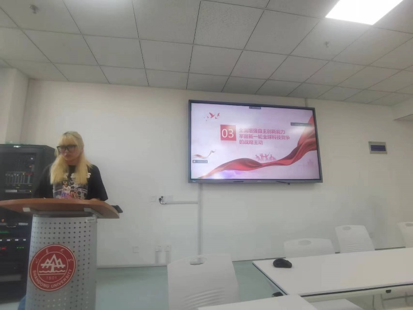 第三小组同志首先以桂海潮教授事迹为例,引出本次活动主题“科教兴国人才强国,实现高水平科技自立自强”。席明萱、王正阳两位党员分别从加快建设科技强国、全面增强自主创新能力、强化现代化建设人才支撑三个方面进行了详细介绍。建设科技强国,离不开教育强国和人才强国,办好人民满意的教育、完善科技创新体系、加快实施创新驱动发展战略、深入实施人才强国战略,教育、科技、人才三位一体协同推进,为现代化建设提供强大的人才支撑。