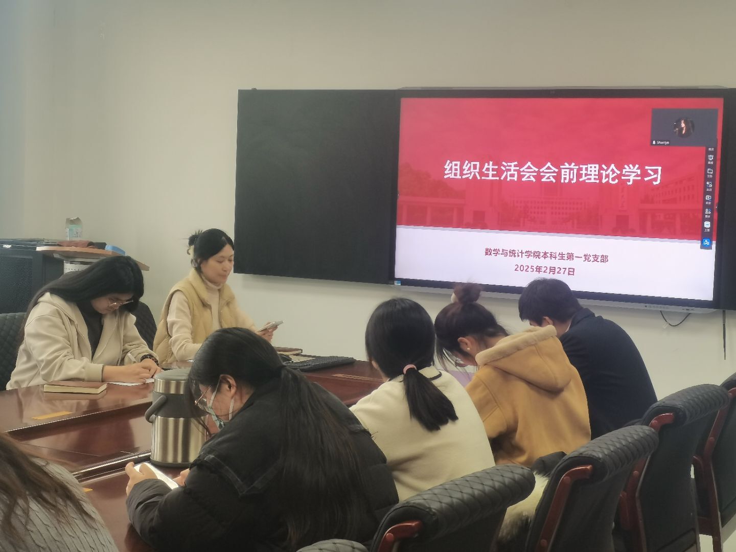 本站讯为高质量开好党支部组织生活会,打牢思想基础,2月27日下午,taptap点点体育本科生第一党支部于北衡楼1421组织支部全体党员开展集中理论学习。会议由党支部书记王祎璠主持。