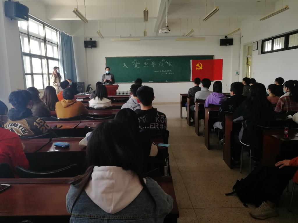 王鹏飞宣布学院“青春建功新时代,砥砺奋斗正当时”毕业生党员教育实践活动方案,为切实抓好毕业生党员“出口关”,学院将结合党史学习教育和建党100周年系列活动,组织毕业生党员研读一本党史著作、上好一堂主题党课、共过一次政治生日、重温一次入党誓词、参与一次毕业座谈、争做一次党员先锋、做好一件身边实事的“七个一”教育实践活动,推动毕业生党员在学党史、讲党史、懂党史、用党史方面发挥示范带动作用,真正达到“明理、增信、崇德、力行”新成效。