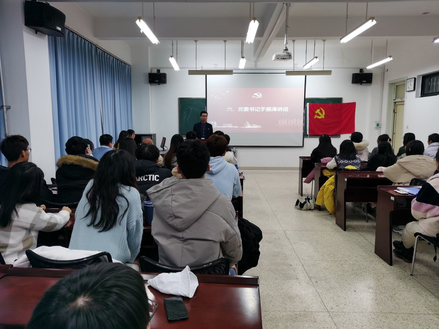 于振涛代表学院党委进行总结讲话,对新党员加入党组织表示欢迎和祝贺,并对与会党员提出三点要求:一是信念坚定,对党忠诚,打牢思想根基,自觉在思想上政治上行动上同党中央保持高度一致;二是积极学习,奋斗终身,要锤炼自身本领,提高业务能力,肩负起时代赋予的重任;三是坚持原则,勇于牺牲,时刻以集体利益为重,充分发挥共产党员的先锋作用。