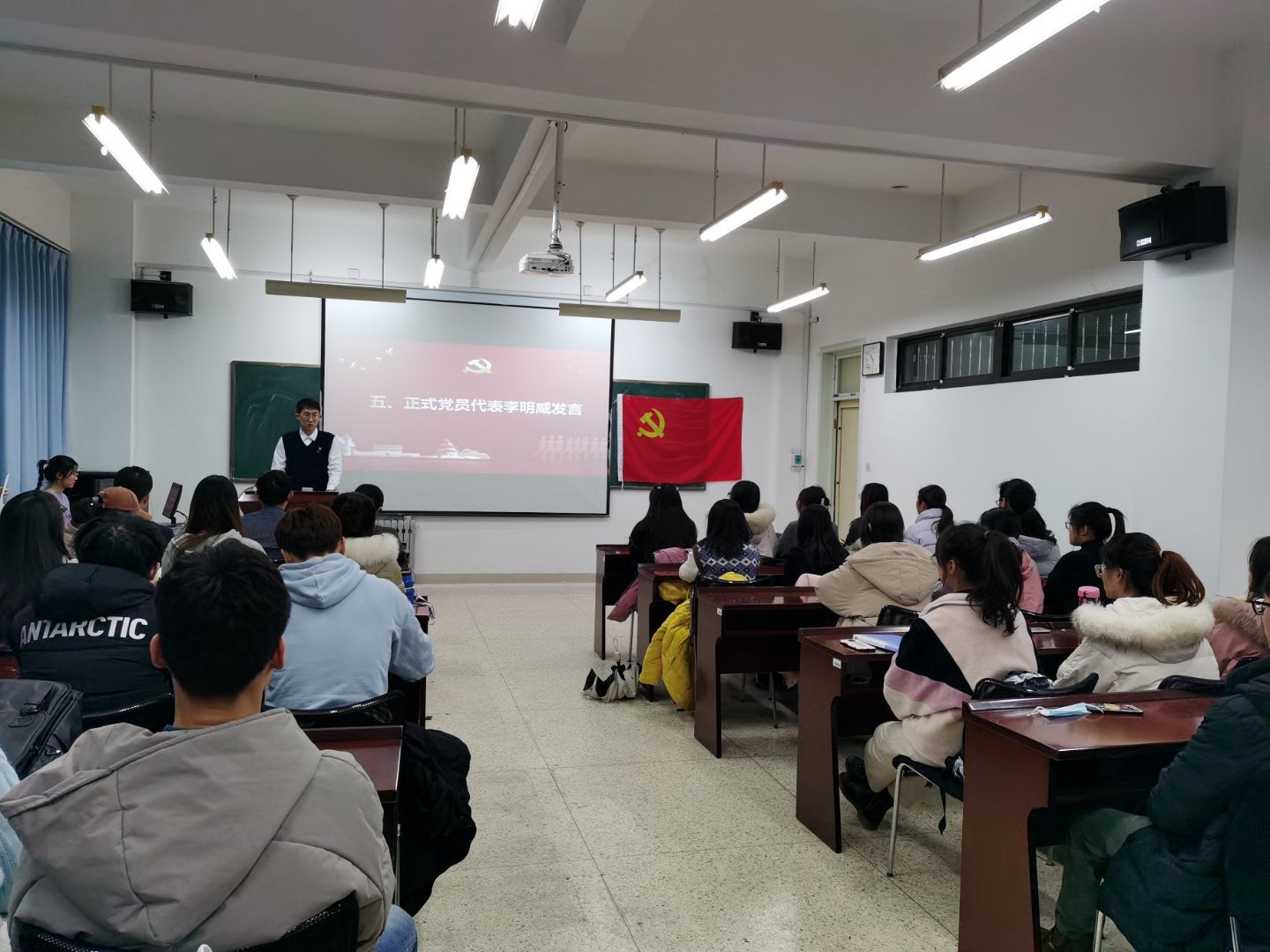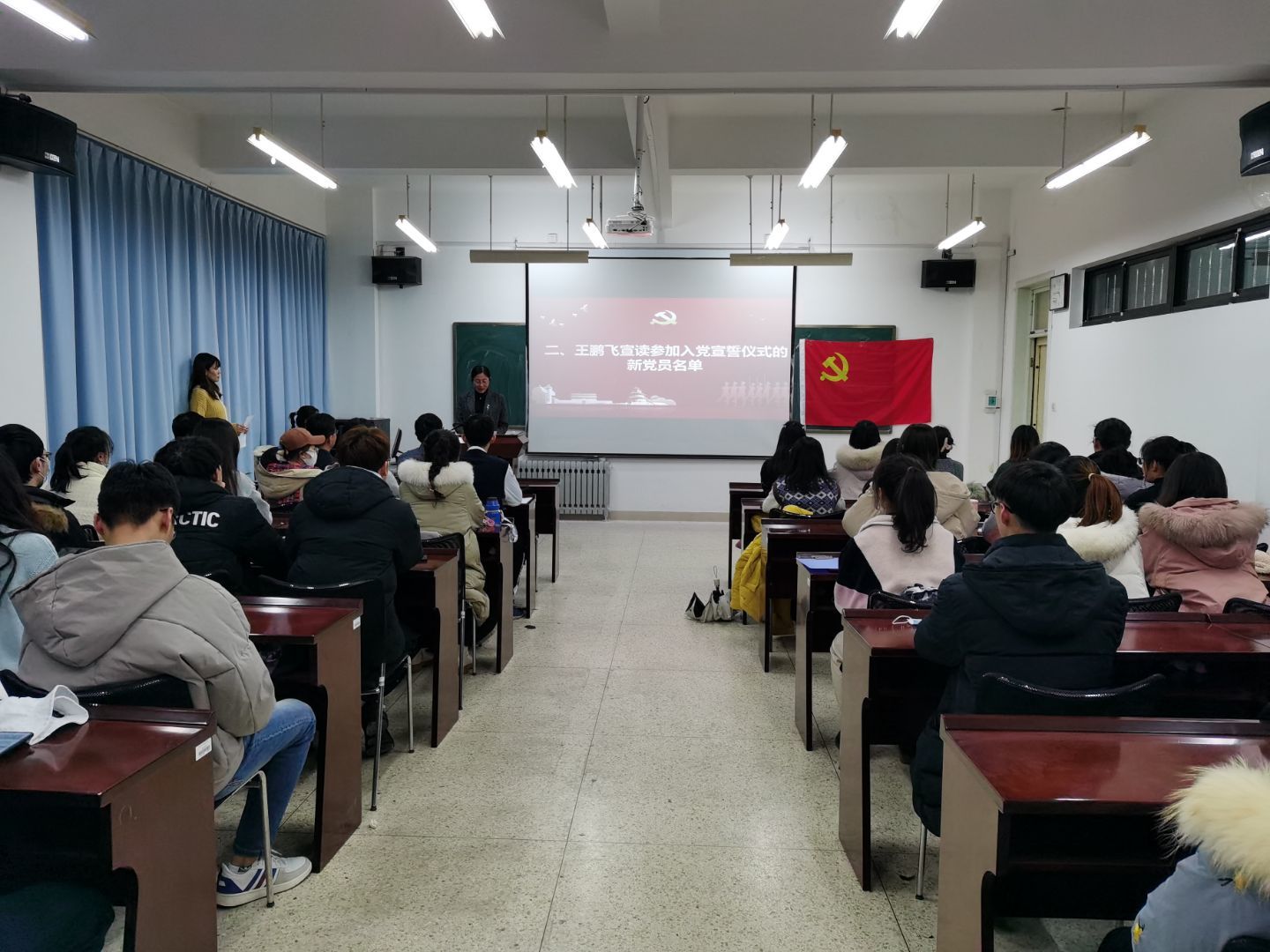 入党仪式后,与会的党员共同观看了《榜样6》(建党100周年特别节目),以此激励全体新党员以榜样为镜,向先进看齐,对党忠诚,坚定信念,把对榜样的崇高敬仰化为担当尽责、奋发作为的强大动力,切实在学习生活中发挥党员先锋模范作用。