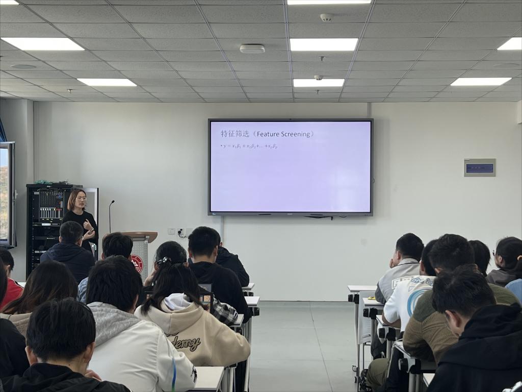 卜育德,现为统计系主任,教授,他结合自己的研究方向和研究内容,介绍了数学在天文领域的应用,分析了天文与人工智能领域的研究中常用的机器学习等专业知识和工具,他鼓励同学们打好专业基础,掌握扎实的软件应用能力,根据自己的兴趣,积极参加教师项目化的学习和研究。王效强,现为统计系副教授,他着重介绍了数学在未来统计与数据科学方向的应用储备,他以《概率论和数理统计》课程为例介绍了目前所开课程所涵盖的知识体系和创新点,他强调学生应首先学好专业基础课,务实理论根基,这样才能在未来的快速发展中站得住、行得远。胡琴琴,现为统计系副教授,她结合自己的研究重点介绍了特征筛选和异质数据的概念和应用,着重讲解了异质数据的分解、多源融合和迁移学习。