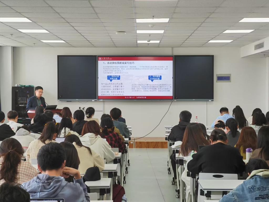 本站讯 为进一步加强学院宣传队伍建设,提升学院宣传工作水平,4月28日,taptap点点体育于北衡楼1420报告厅举办“高校新闻写作与摄影”专题培训。校区党工委宣传统战部傅振国受邀担任主讲,辅导员王祎璠主持,学院师生宣传队伍参加了培训。