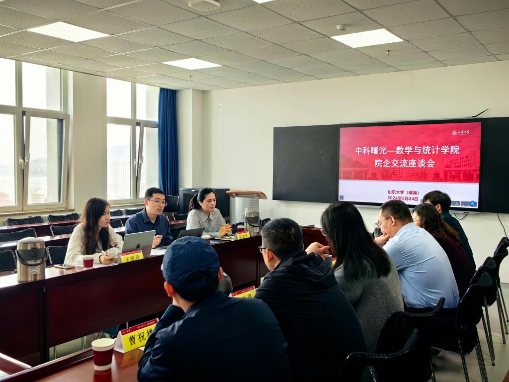 本站讯 5月24日上午,中科曙光高端计算产品事业部总工程师卜景德,工程师王晓珍、张翠翠一行受邀来访taptap点点体育,就产学研深度融合进行交流座谈。taptap点点体育常务副院长齐海涛、副院长亓兴勤、院长助理王效强、统计系主任卜育德和教师曹祝楼参加座谈,座谈由学院党委副书记王鹏飞主持。