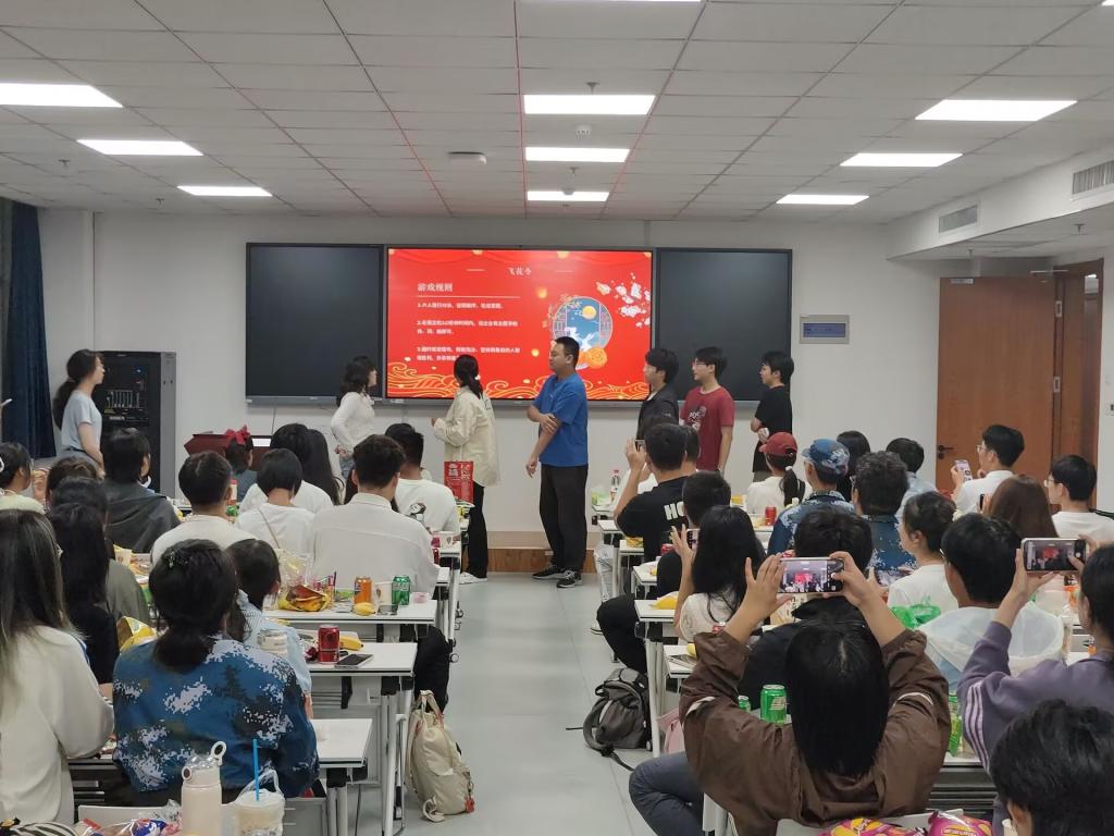 茶话会上,学院为同学们准备了月饼、水果、饮料等节日小食,并精心设置了灯谜竞猜、诗词“飞花令”和“映月猜画”等互动游戏。同学们热情高涨,相谈甚欢,积极参与各项游戏,现场气氛轻松活跃。最后,同学们共同观赏了精彩纷呈的2024年央视中秋晚会,在温馨美好的氛围中度过了这次难忘的中秋之夜。