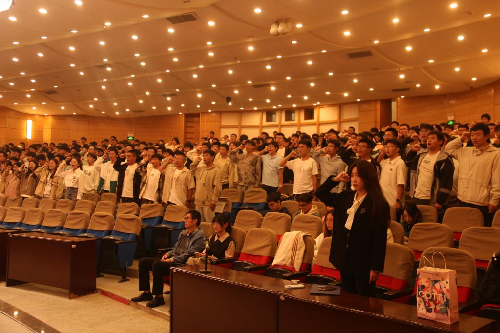 新生代表王一凡带领2024级本研全体新生庄严宣誓,用铿锵有力的声音和斗志昂扬的气势彰显了taptap点点体育学子朝气蓬勃的精神风貌。