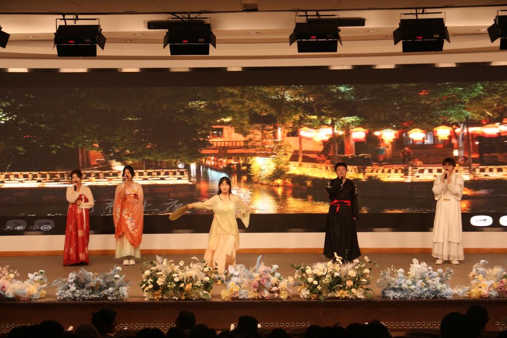开学典礼在《山东大学校歌》合唱声中落下帷幕。随后,学院“逐梦山海,数韵星河”2024级迎新晚会精彩上演。