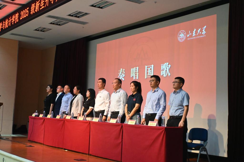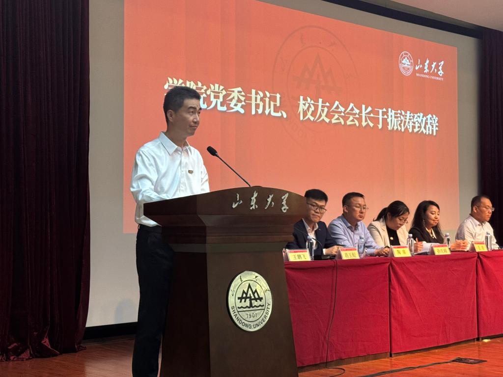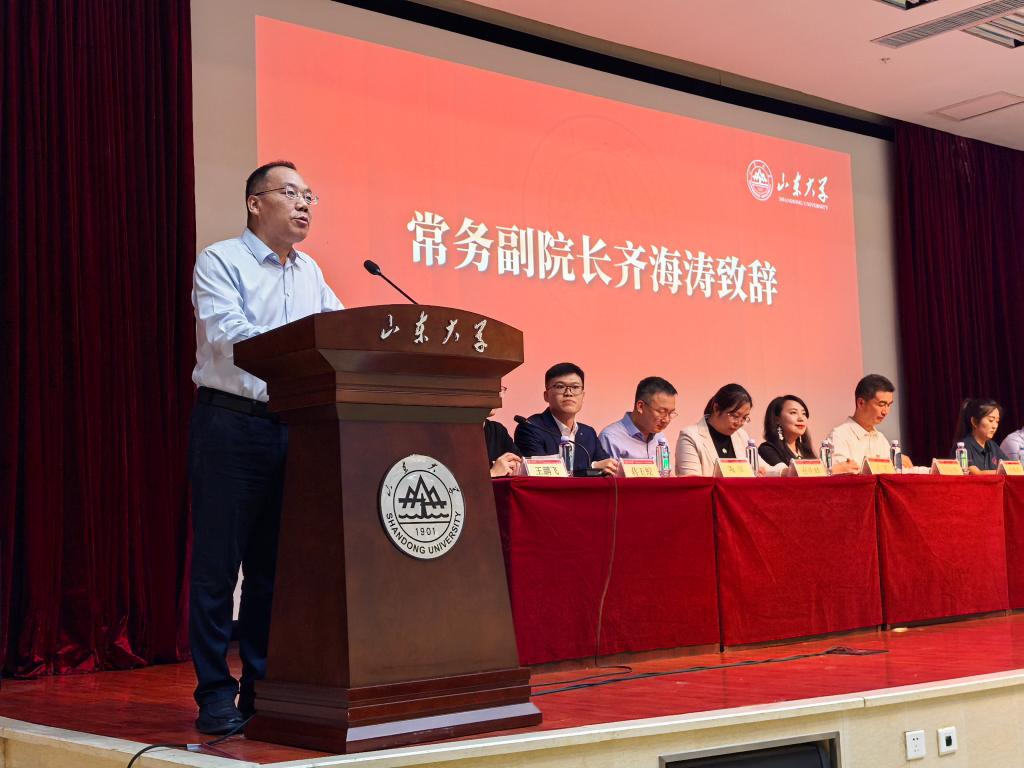 常务副院长齐海涛代表学院对全体新生的到来表示热烈的欢迎。他回顾了山东大学的百廿历史和数学学科的深厚底蕴,结合党的二十大报告与学校第十五次党代会精神,寄语新生三点期望:做“勇担责”的执炬者,以家国情怀书写大我人生;做“知进取”的攀登者,以跬步千里之功筑学术之基;做“心豁达”的修行者,以山海胸怀涵养浩然之气,勉励大家将个人理想融入国家发展,以数学之力服务国之大者。