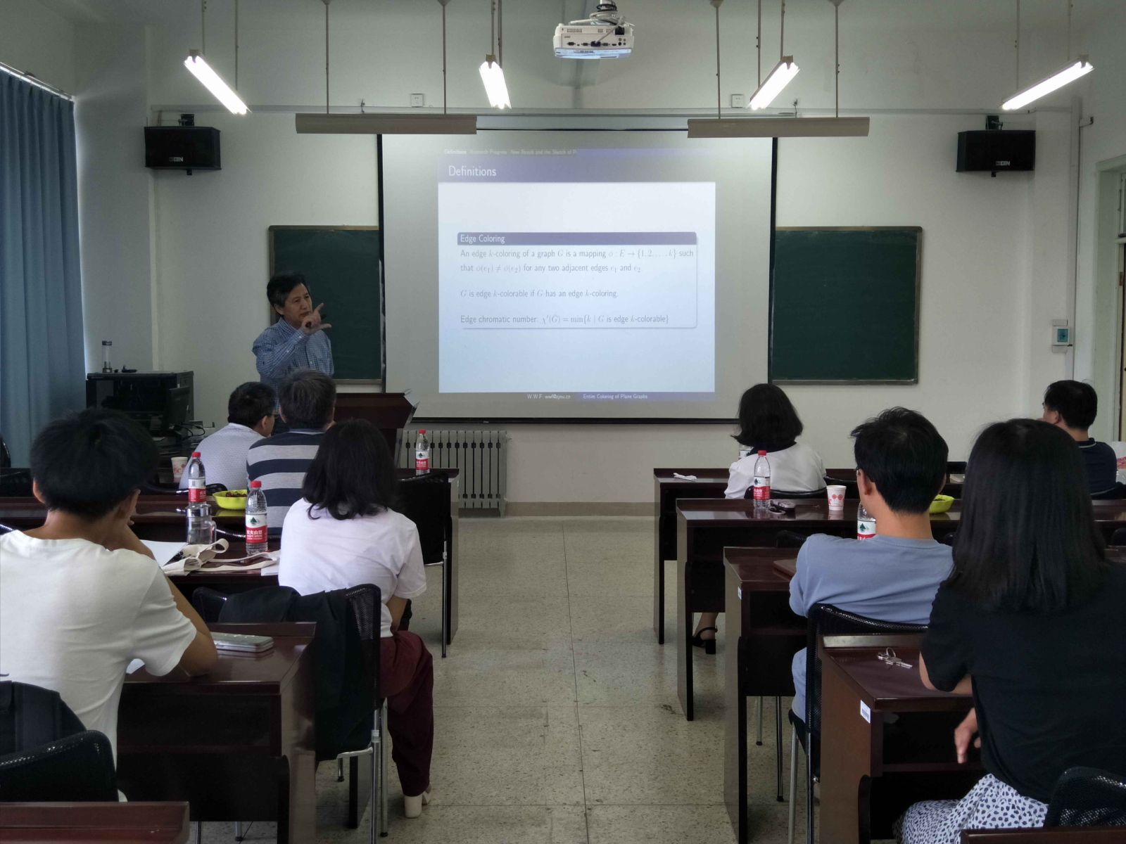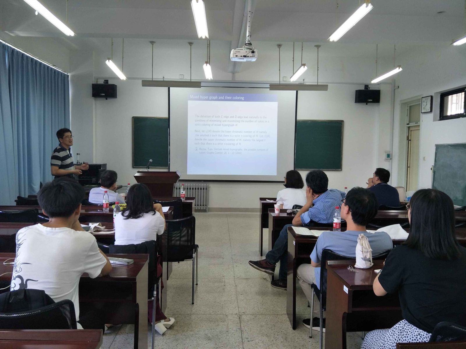 会议首先由taptap点点体育亓兴勤教授致欢迎辞并负责主持本次报告会。浙江师范大学的王维凡教授首先就图的染色问题进行了详细阐述,对点染色,边染色,完全染色和完备染色进行了系统的讲解,在整个报告过程我们不仅对染色问题有了深入了解,更是了解了染色问题一步步的发展历程,受益颇深。接着,潍坊学院蔡建生教授对C-超图的最大超边数做了详细报告。他先从混合超图的染色问题入手,提出几个开放性的问题,而后给出了证明。报告结束后,我院教师和山东大学吴建良教授与蔡建生教授进行了相关问题的讨论。