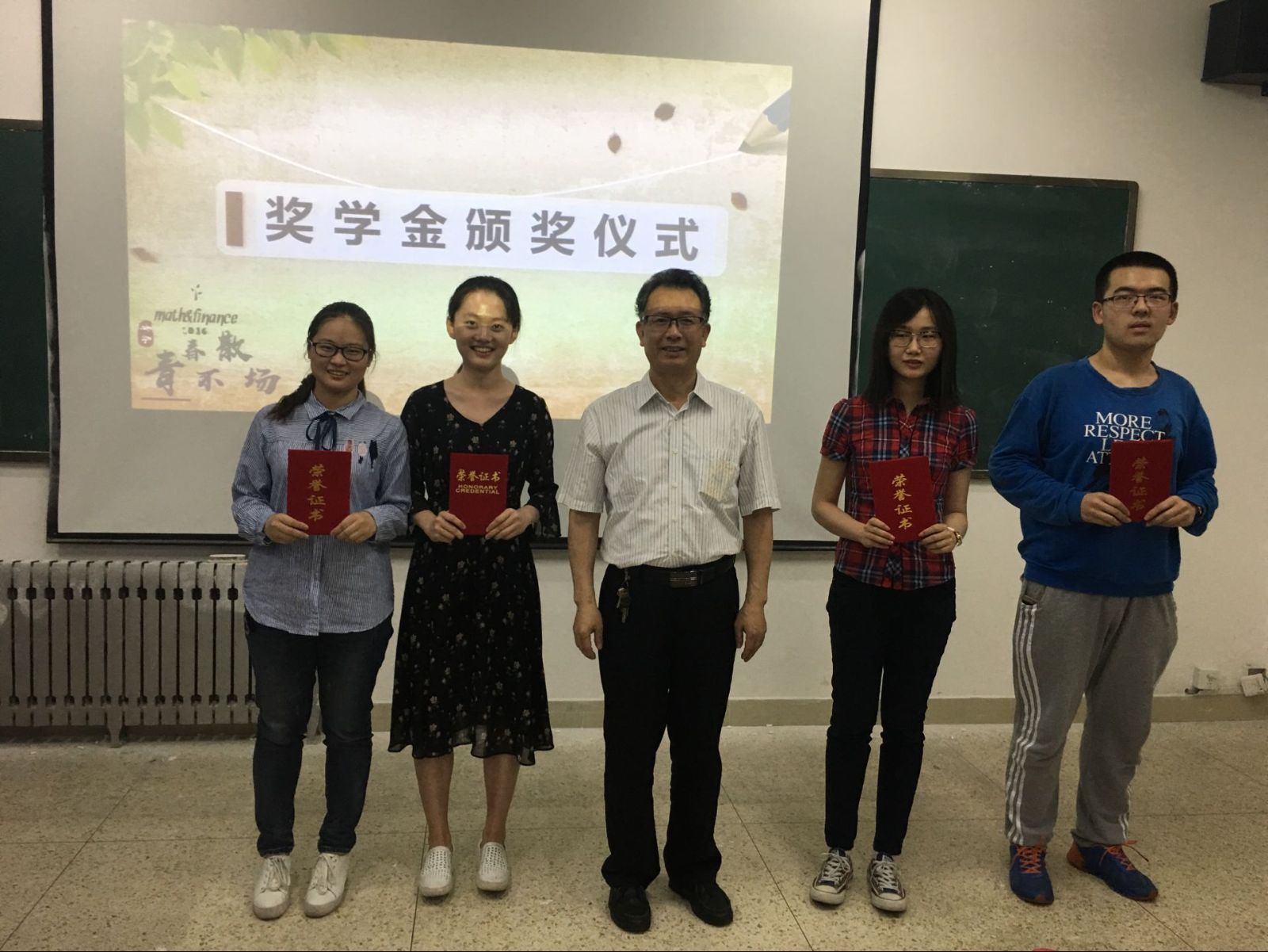 本次专项奖学金颁奖典礼,既是对取得优异成绩的学生的嘉奖,也是对学习上尚需努力的学生的鞭策,更是对2016级数学与金融实验班两年来学习生活的总结。