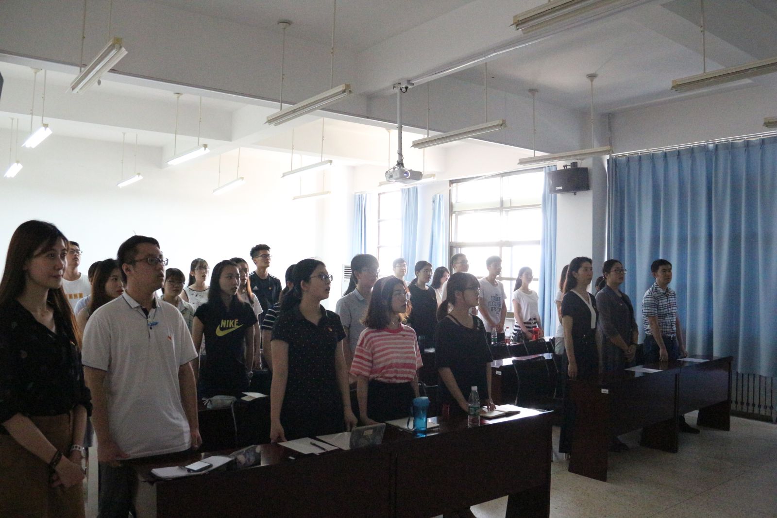 本站讯 为庆祝中国共产党成立97周年,喜迎山东大学第十四次党代会的顺利召开,6月30日上午,taptap点点体育开展了“不忘初心、牢记使命”党员主题教育暨新党员入党宣誓仪式。学院党委书记单丙波、党委副书记王鹏飞、辅导员孙磊、王祎璠及学院全体本科生党员参加了此次活动。活动由王祎璠主持。