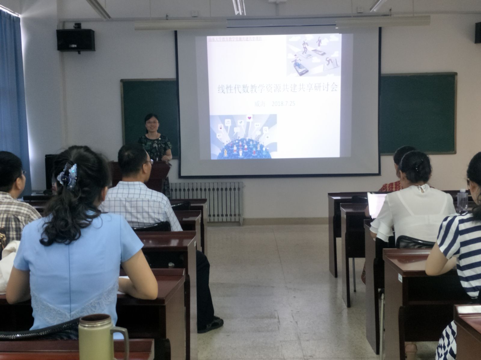 会议上,齐海涛介绍了学校对本科教学课程共建共享建设的支持,鼓励广大教师积极参与到课程建设中来。济南校区数学学院的金辉老师从在线课程建设对教育教学改革的意义谈起,介绍了数学学院在教育教学资源共建共享方面所做的工作。山东大学线性代数作为第一批MOOC课程于2014年上线,迄今为止已经连续开设了八个学期,课程团队由教学经验丰富的秦静教授主讲,并指定了专业负责的老师坚持论坛答疑。在网上众多课程中,该门课程是每周答疑最多、互动最活跃的课程之一,2017年被认定为为首批“国家精品在线开放课程”。金辉老师还就慕课的制作、日常使用及管理方面进行了经验分享。会议持续2个小时,参加研讨会的老师和金辉老师就线性代数MOOC课程建设进行了充分的交流,金辉老师就与会老师提出的问题进行了详细解答。我院教师参与线性代数教学资源共建共享的意愿强烈,双方就今后合作共建共享方面达成了初步共识。