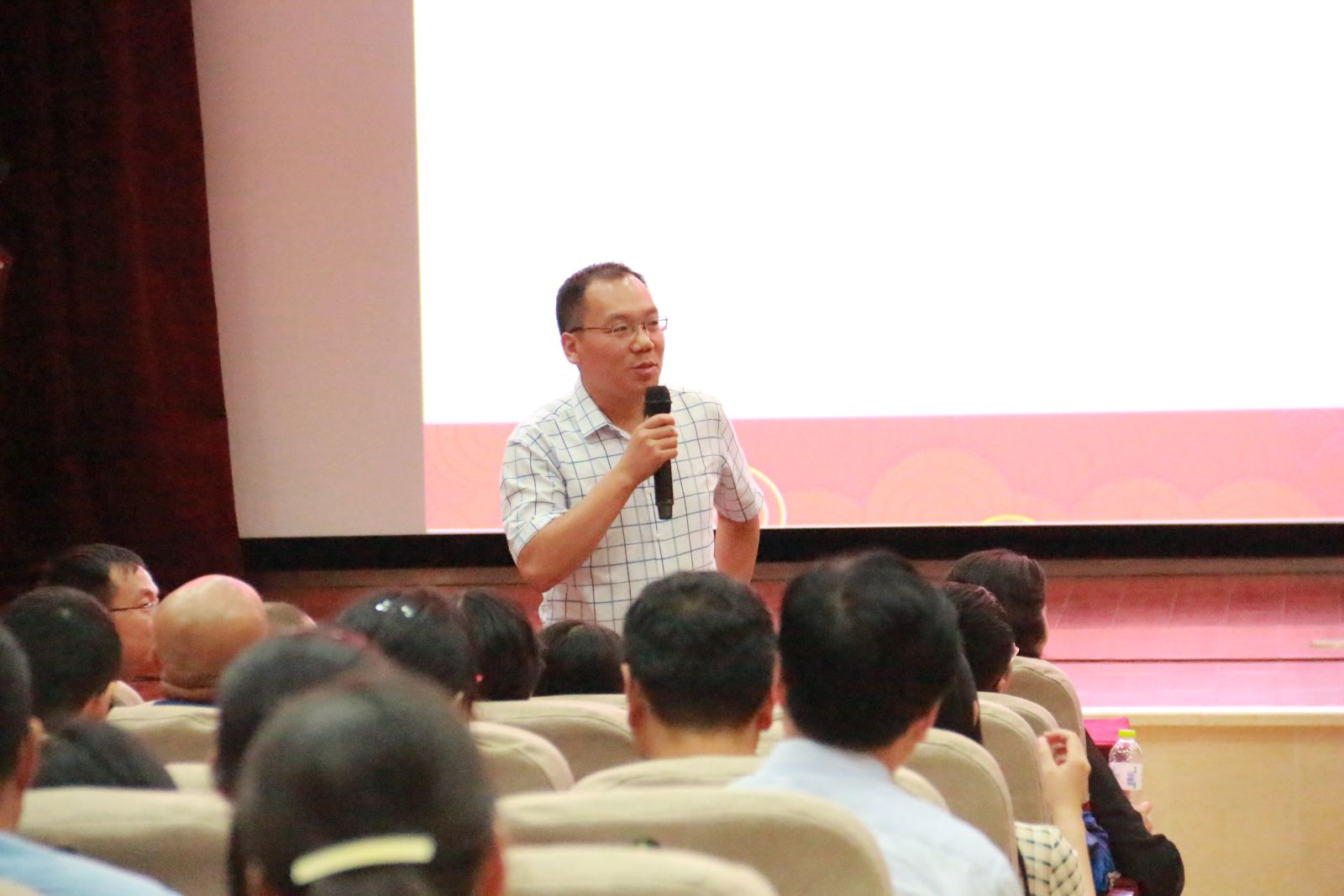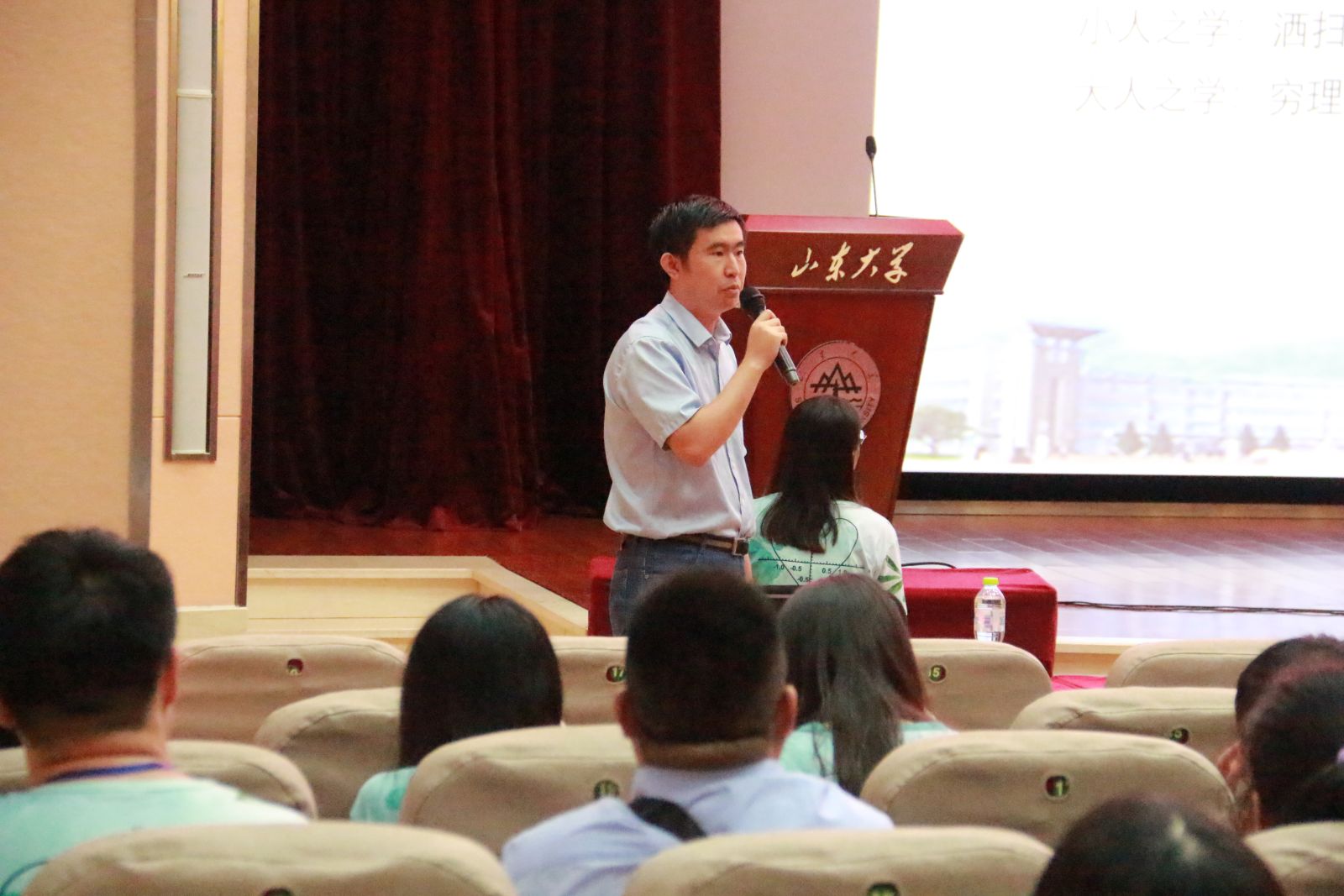在山东大学(威海)宣传片、学院宣传片播放结束后,王鹏飞宣布新生家长见面会正式开始。会上,学院党委书记单丙波代表学院致辞,对新生和家长的到来表示了热烈的欢迎,对学院的师资力量、人才培养特色与成效、学院成绩等方面进行了简要介绍。单丙波指出,在山东大学“双一流”建设和一体化发展战略下,学院发展迎来了新的契机,学院有信心、有能力与家长通力合作、共同努力,以更好的姿态回馈家长的信任。在家长提问环节,分管教学院长和辅导员就课程设置、第二课堂培养、就业方向等问题进行了耐心解答,现场气氛热烈。新生辅导员孙磊针对学校的资助管理体系、奖学金评定办法等政策向家长进行了说明。最后,王鹏飞从自身经历出发,分享了自己关于教育的体会,同时强调了校园安全等问题,希望家长知晓理解、合作沟通,为学生的成长一同努力。