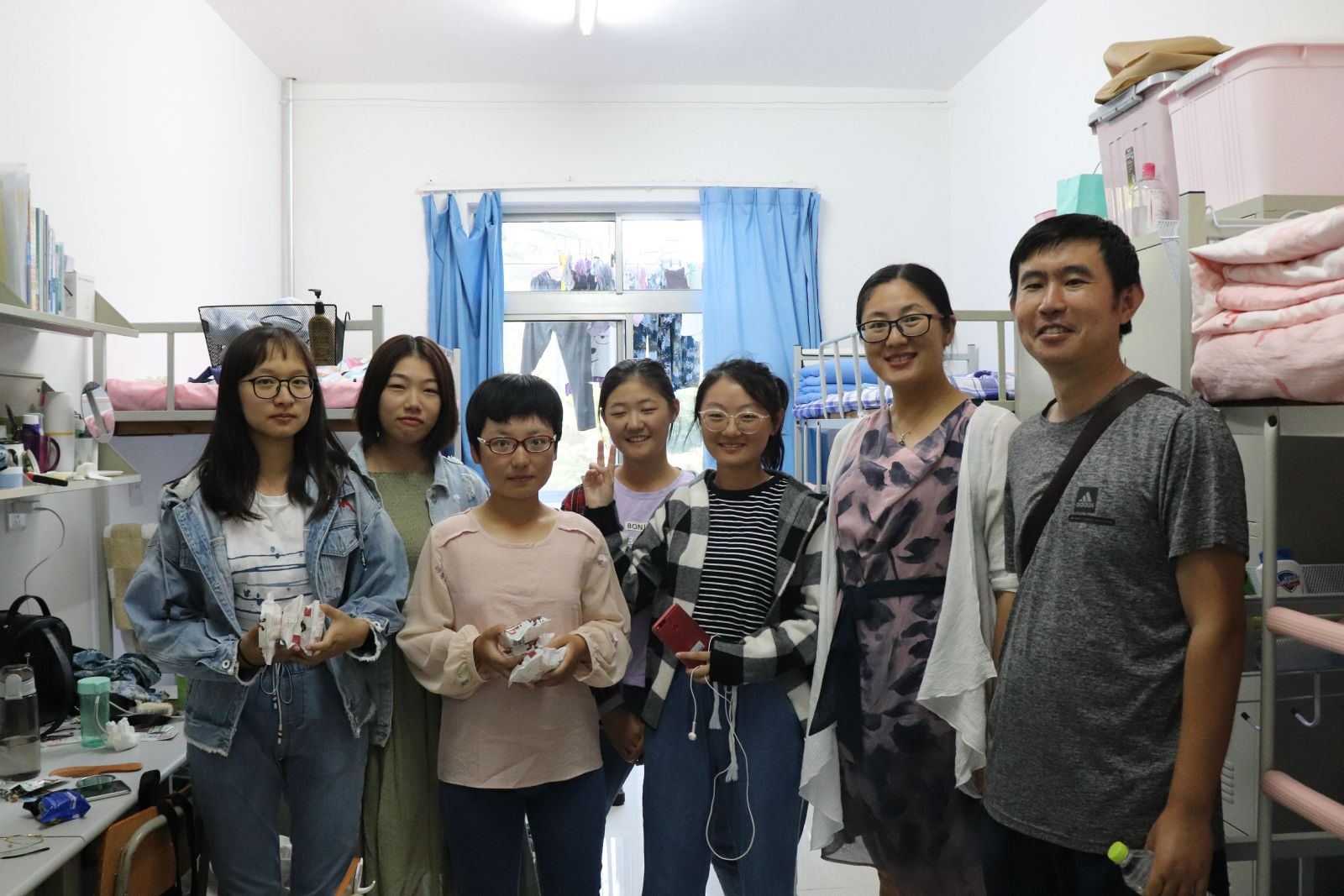 本站讯 9月24日下午,我院开展了“情暖中秋”新生慰问活动,学院党委副书记王鹏飞、辅导员孙磊对2018级新生进行了走访慰问,学生会部分学生也参与了此次活动。