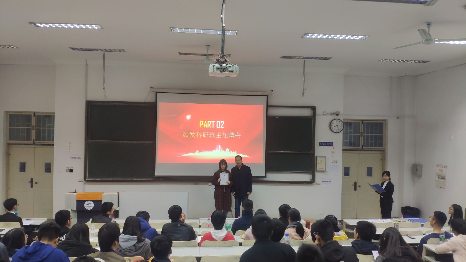 本站讯 11月15日16时30分,我院于图东教学楼126室举行“携手朋辈辅导,传承创新精神”第十二届科研班主任受聘仪式。学院副院长齐海涛,统计系主任王效强,辅导员孙磊、王紫山受邀出席了本次仪式,科研班主任代表及18级新生参与了本次仪式,仪式由科技学术部干事曾好主持。