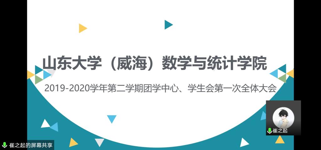 本站讯  319日下午,为总结团学中心学生会上学期及疫情期间的工作并对后续工作进行展望,我院使用腾讯会议软件举办线上学团全体会议。大会由崔之起主持学院团委书记孙磊、辅导员赵德豪参加了本次会议。学生会团学中心全体成员参加了本次会议。