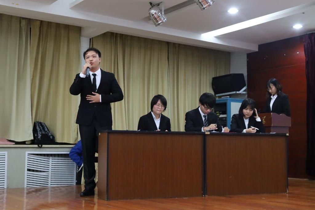本站讯 11月24日晚19:00,望言辩论社2019辩论表演赛与经验分享会于文泰苑518室举行。校辩论队队长陈超、商学院雁鸣辩论队队长杨峻和翻译学院谷语辩论队队长丛铭洋担任比赛评委,校辩论队副队长梁越和海洋学院山海辩论队队长李奇担任指导嘉宾,社团内部19级会员自愿组队参加比赛。