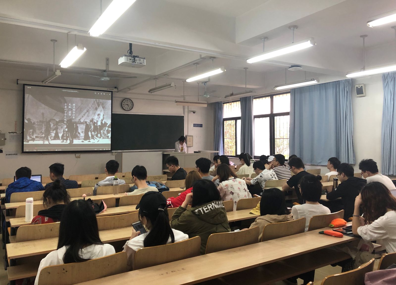 首先,大家观看了一组纪录片,黑白色的镜头记录了百年前革命先烈面对国家与民族的生死存亡,挺身而出带领并团结全国人民奋起抗争的峥嵘岁月。而后的百年时间里,一代代青年放下了安逸的生活,投身于西部开发、投身于航天领域、投身于保家卫国的奋斗中。习近平总书记在纪念五四运动100周年大会上讲道:“一代人有一代人的长征,一代人有一代人的担当。建成社会主义现代化强国,实现中华民族伟大复兴,是一场接力跑。我们有决心为青年跑出一个好成绩,也期待现在的青年一代将来跑出更好的成绩。”同学们认真观看,做好记录,并表示在即将成为新一届毕业生的我们,面对就业或继续深造等种种人生的抉择时,更应以先辈为楷模,尽最大可能为国家贡献自己的一份力量。