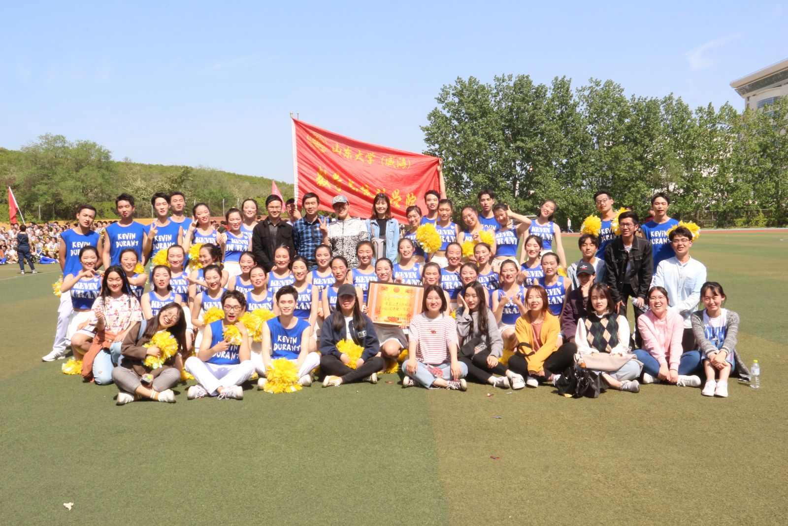 本站讯 为增强学生们的团结意识,丰富学生们的课余生活,5月14日中午,2019年山东大学(威海)健美操比赛决赛于田径运动场举行。我院党委副书记王鹏飞到场观看,和数院学子一起为健美操队加油助威。