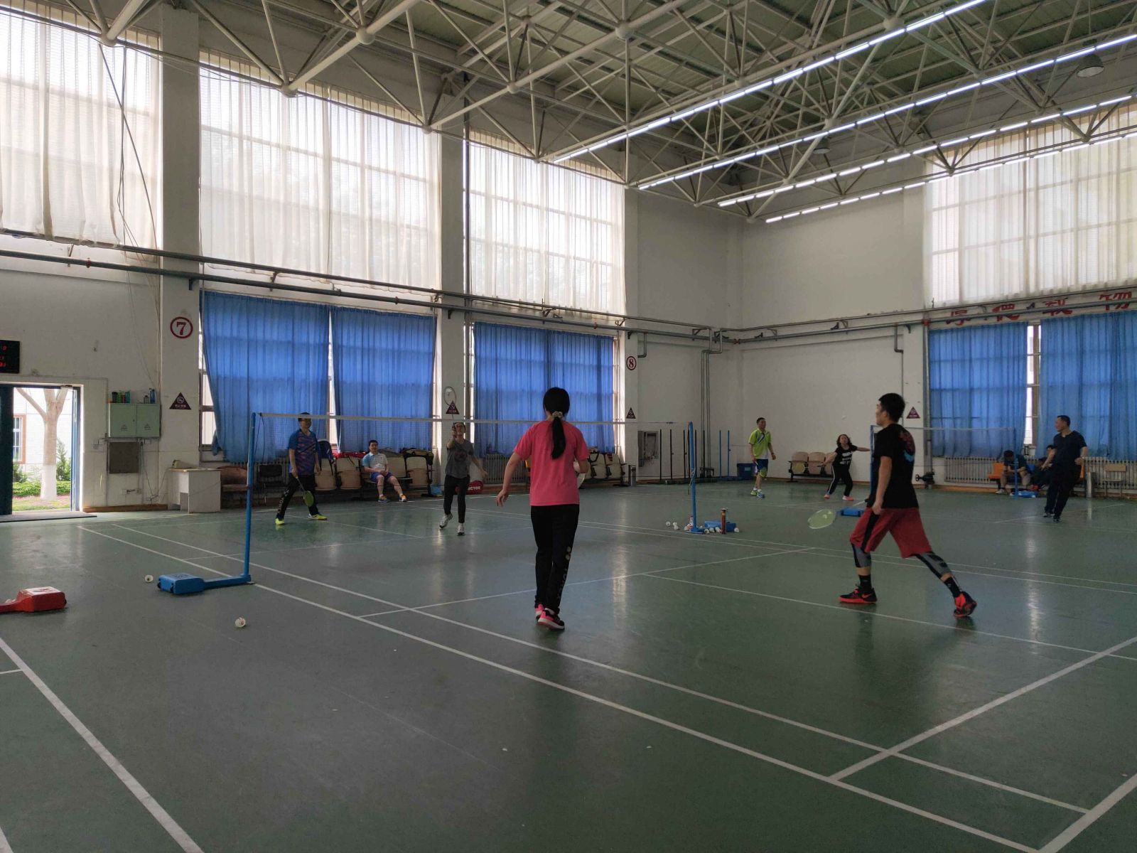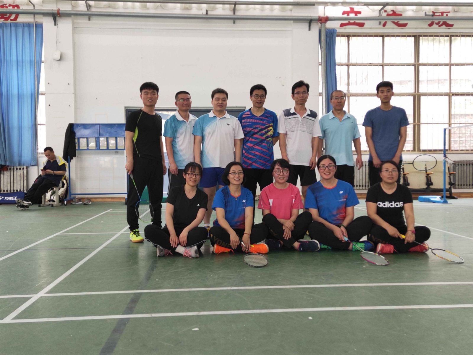 本站讯 为丰富教师与学生的业余文化生活,进一步推动全民健身的深入开展,为广大羽毛球爱好者提供一个相互交流和切磋球技的平台,2019年5月12日上午9点,我院研究生会于风雨操场举办了第一届以“知数达理,风羽同舟”为主题的师生羽毛球友谊赛,学院教师羽毛球队及部分研究生同学参加了此次比赛。