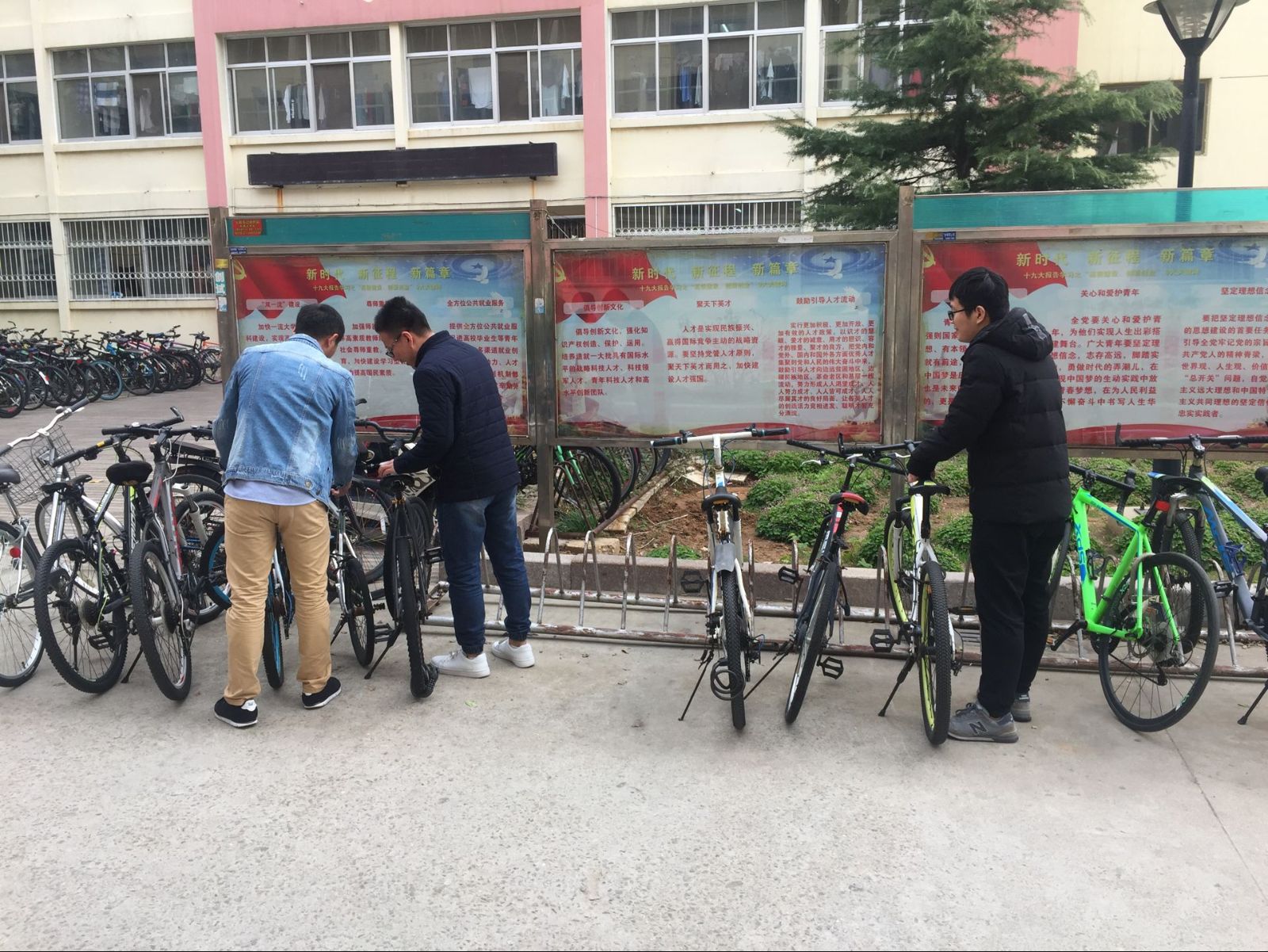 活动开始前一周,韩炎君下发招募志愿者的通知,全体同学踊跃报名。下午三点整,班级同学在蒙牛广场集合,活动准时开始。首先,韩炎君向同学们简要说明了本次志愿服务活动的目的,并提出摆放自行车的具体要求。在征集同学们的意见之后,将同学们按照宿舍分成小组,分别负责不同的自行车停放区域。随后,各组成员前往组内分配的区域,将放置凌乱的自行车重新整理摆放。在摆放的过程中,各组成员不仅注意每排自行车摆放的整齐程度,同时考虑到进出自行车的方便程度,所以也着重注意了自行车排与排之间的摆放间距。下午五点左右,同学们完成了整理自行车的任务,在韩炎君的组织下,有序离开各组负责区域。