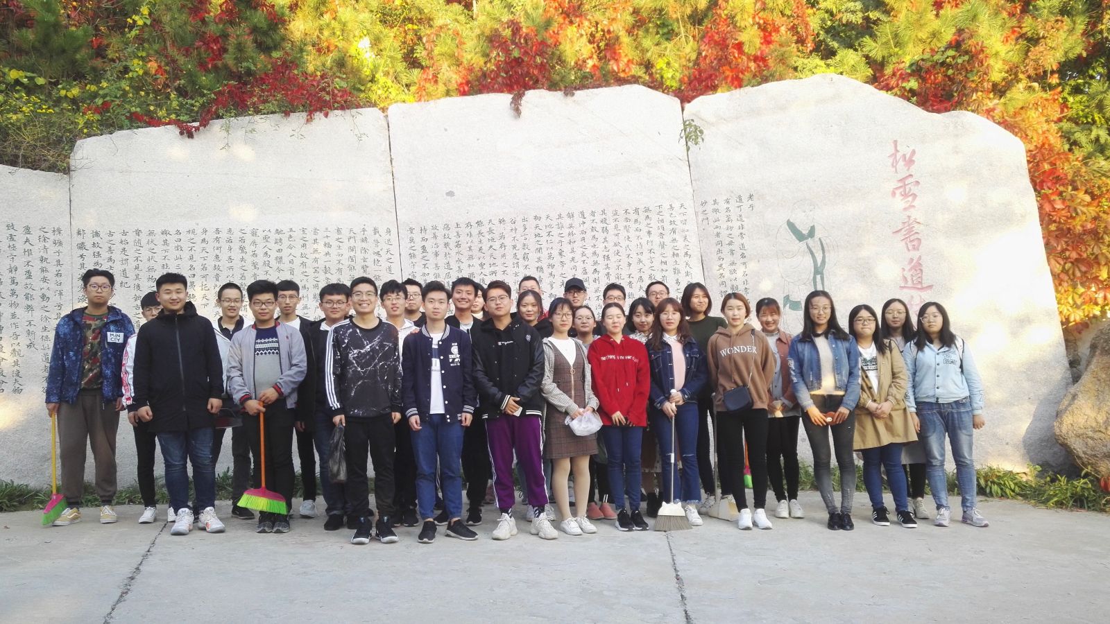 本站讯 2018年10月18日下午,2016级数学与应用数学班在山东大学(威海)玛珈山举办了以“清扫玛珈,美丽校园”为主题的清扫玛珈山志愿活动,参与此次志愿活动的人员是2016级数学与应用数学班的全体成员。本次活动由就业委员陈耀伟主持。