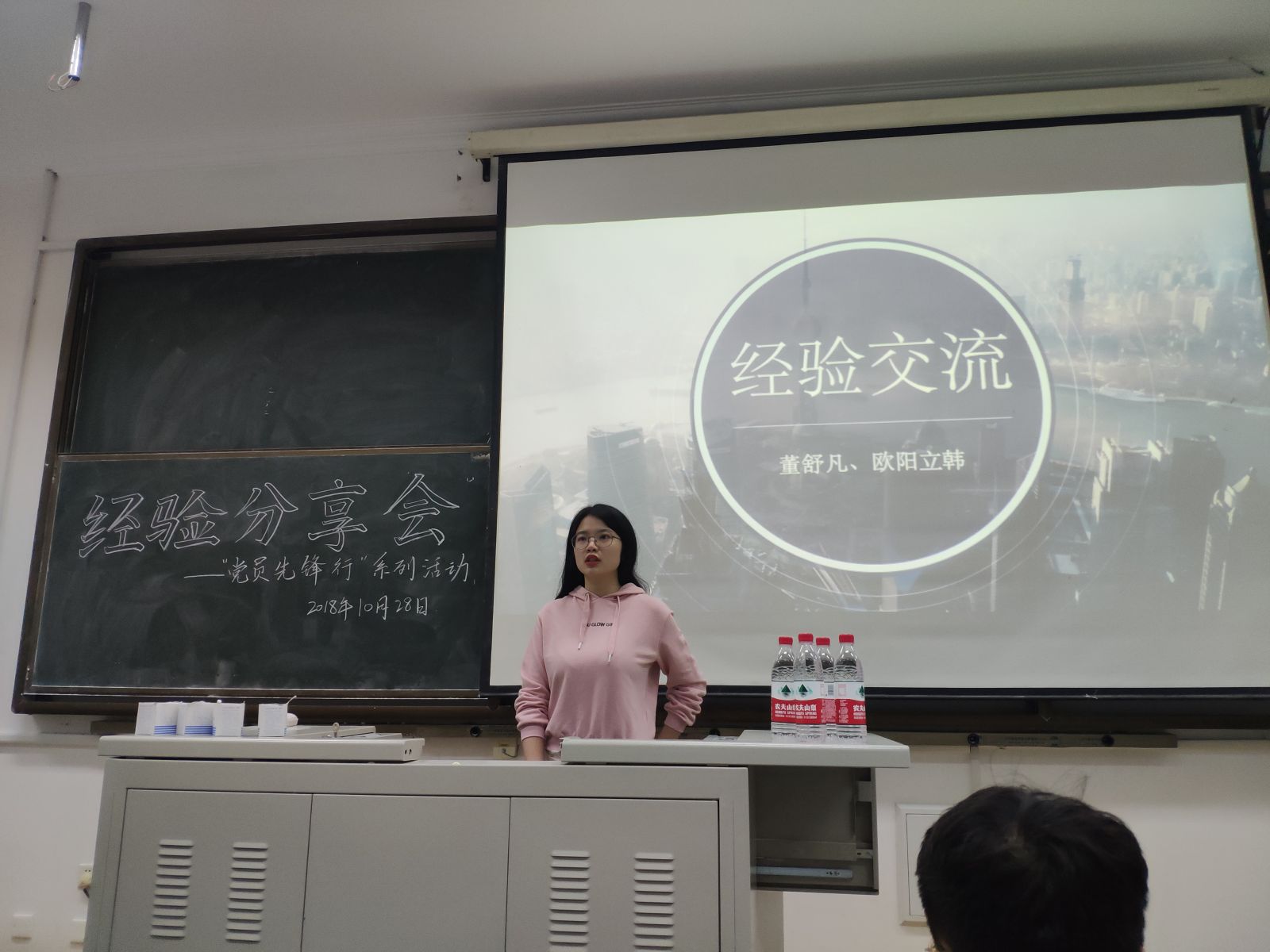 本站讯 2018年10月28日晚,2018级信息与计算科学班在图东教学楼326教室举办了党员分享会,出席分享会的有2015级信息与计算科学班党员代表欧阳立韩、董舒凡、李珍、李盈园。2018级信息与计算科学班的全体同学参加会议。