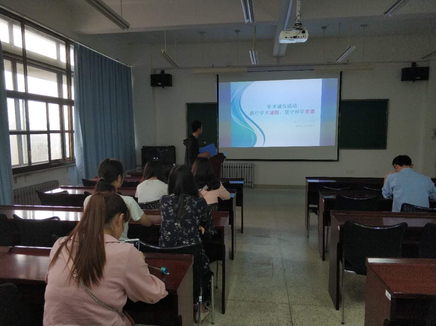 学术诚信主题班会上,研究生同学们都细致的了解了学术诚信的一些要求,并且集体学习总结了我院的研究生关于学术诚信的倡议。视频观看得到大家的热烈响应。人无信不立,言必信,行必果是大家所熟知的,而作为当代学生更应该重视自身学术的诚信要求。