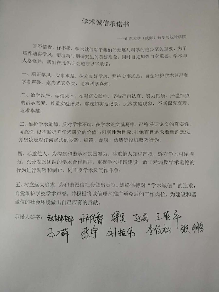 本站讯 2018年5月,我院研究生积极响应“学术诚信教育活动”号召,为践行学术诚信,遵守学术道德,开展了“学术诚信主题班会”、“线上学术诚信倡议书转发”、“签署学术诚信承诺书”等系列活动,要求研究生思想上树立诚信的意识,行为上恪守诚信的品质。