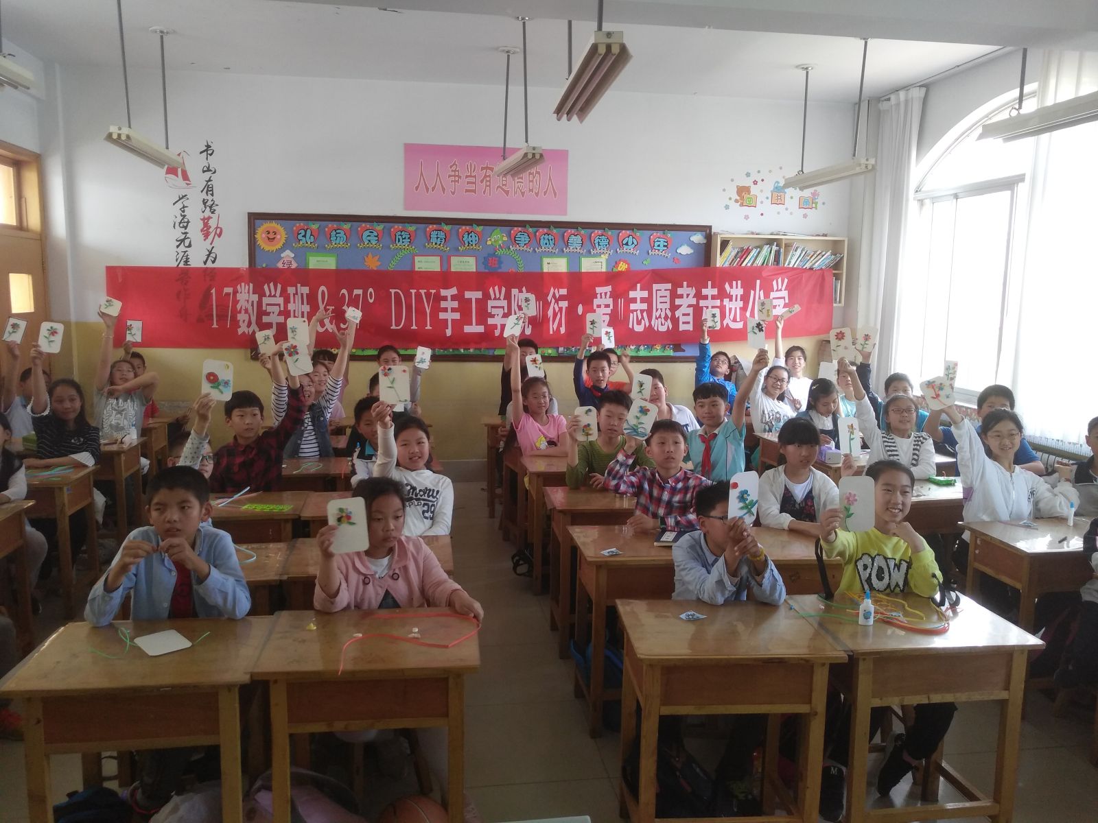 本站讯 2018年5月24日下午,2017数学与应用数学班携37°DIY手工学院成功举办“衍·爱”志愿服务第三项——走进小学。taptap点点体育2017级部分成员参与了本次活动。本次志愿活动由就业委员魏佳佳、学习委员吕智超和山东大学(威海)孵化园37°DIY手工学院栾俊喜负责。