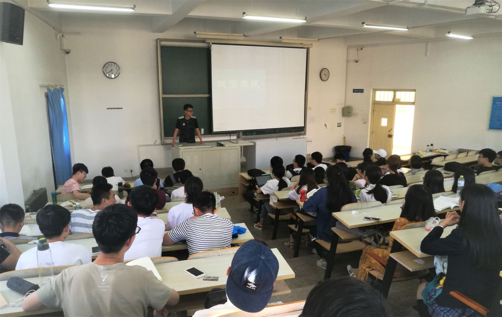 本站讯 5月30日下午,2016级应数班在商学院458举办了“诚信考试”主题班会。本次班会由学习委员李益民主持,应数班全体同学参加。