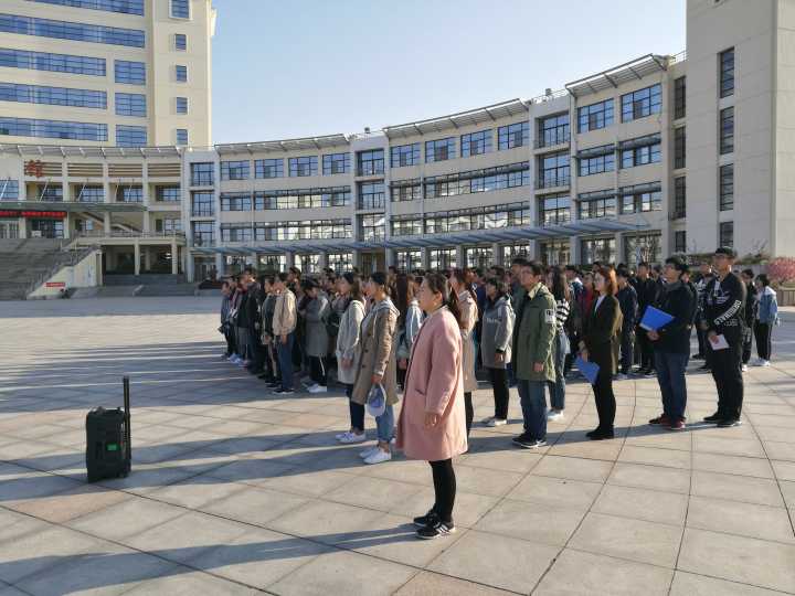 本站讯 4月16日,我院在图书馆广场举行“献礼十九大,不忘初心;共圆中国梦,砥砺前行”升国旗主题团日活动。学院团总支书记陈昕、2017级全体学生参加此次活动。活动由信息与计算科学班团支书张佳珺主持。