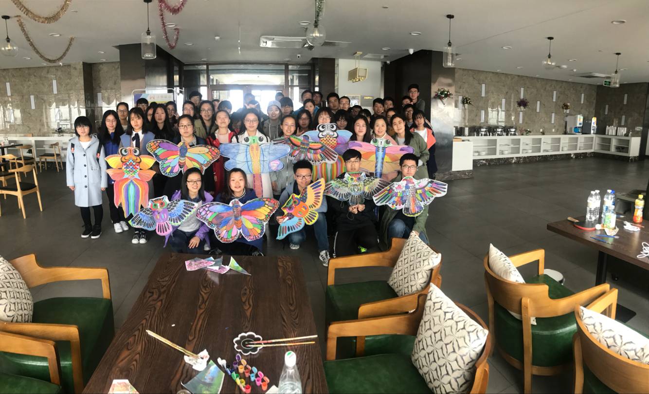 上午八点十分,班级全体同学在刘欣悦的带领下前往沃德酒店活动厅。八点半,活动准时开始。首先进行随机抽签,将全体同学分成十组进行集体热身游戏环节,随后进入正式游戏阶段,分别做了解绳游戏和叠报纸游戏,通过游戏环节,同学之间的关系更加亲密,组内成员之间也更加熟悉。之后,心理委员刘欣悦发放风筝及颜料,每组选择自己中意的风筝进行涂色。最后大家一起前往沙滩放飞风筝,整个活动在大家的欢声笑语中落下帷幕。