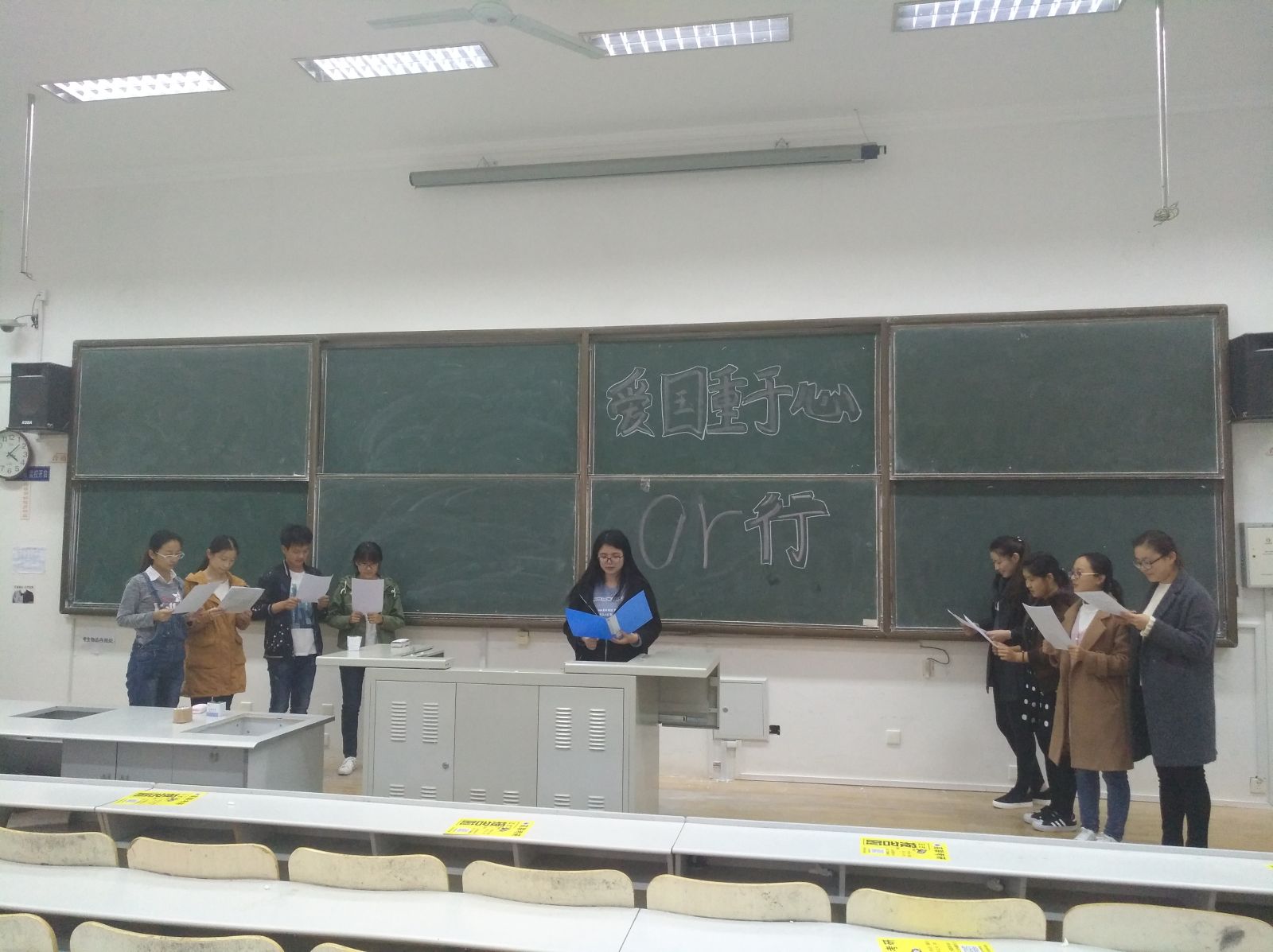 本站讯 2017年11月2日下午,2015级信息与计算科学班于图东教学楼205举办“爱国重于心还是重于行”主题辩论赛,本次辩论赛由团支书欧阳立韩主持,聂伟坤、杨易等八位同学参加。