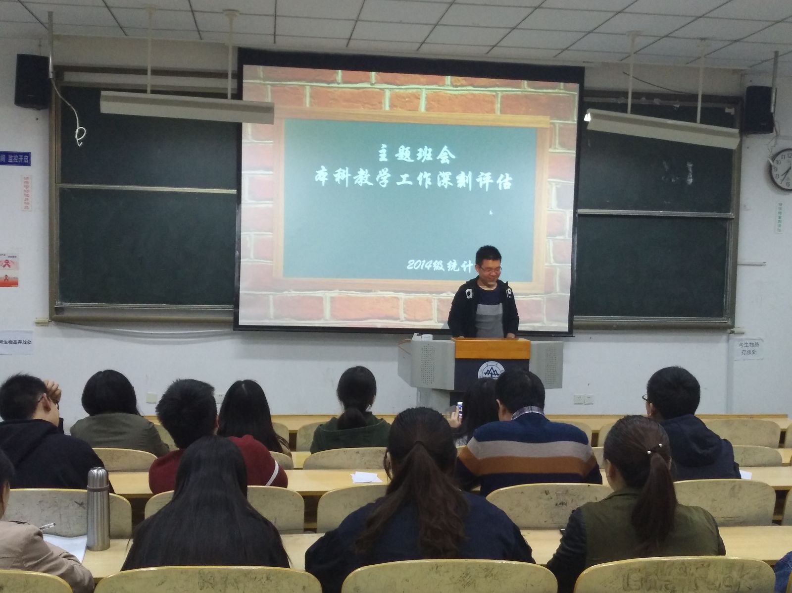 本站讯 10月16日晚19点,taptap点点体育2014级统计一班于图西教学楼219室举办了学习本科教学工作审核评估应知应会50问主题班会。本次会议由陈田同学主持,2014级统计一班共45人参加。