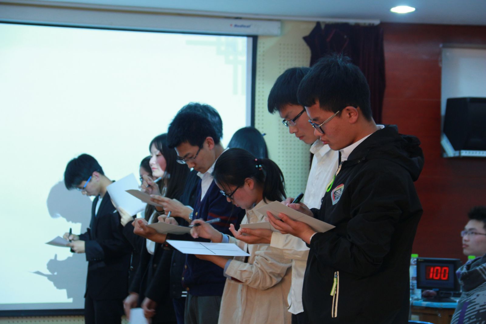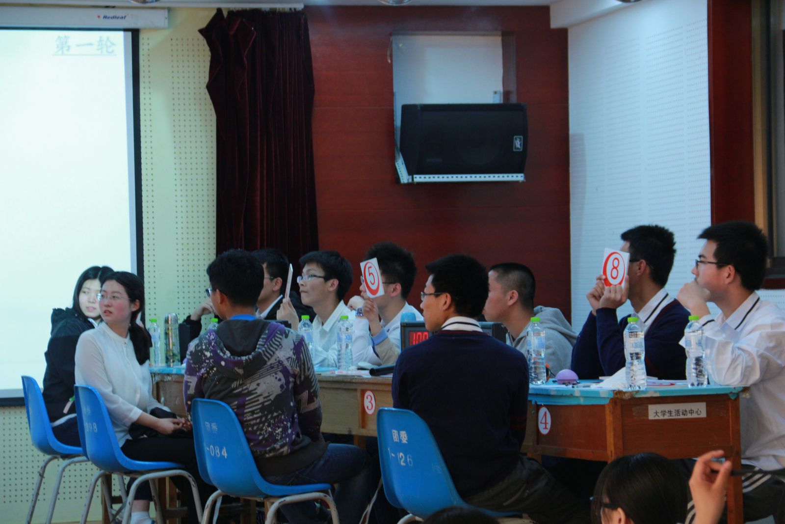 本站讯 4月23日,taptap点点体育于蒙牛518举办了数学趣味知识竞赛决赛。本场辩论赛邀请到了学生会副主席杨云鹏,秘书长王璐,社会实践部部长李盈园,生活权益部部长刘明学,社会实践部副部长李小艺担任嘉宾。参与本次辩论赛的有14应数,15应数,15统二,15数金,16统一,16应数,16数金和哈工大数理学院共8支代表队。崔晓同学主持本场比赛。
