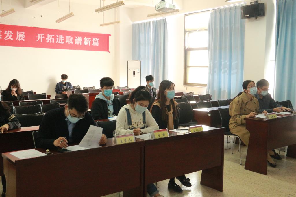 本站讯 10月19日中午,我院于图东环楼304室举办了2020年国家奖学金答辩会。学院党委副书记王鹏飞,辅导员孙磊、王祎璠、王紫山、古钰作为评委出席会议。共有十九位答辩人参加了本次答辩会,其中一位进行线上答辩。