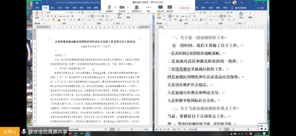 本站讯 2020年3月28日下午3时,我院团学中心、学生会全体成员于腾讯会议召开学习习近平总书记在统筹推进新冠肺炎疫情防控和经济发展工作部署会议上的讲话及设计主题团日的线上会议。团学中心、学生会全体成员参加此次会议,会议由学生会主席魏佳佳主持。