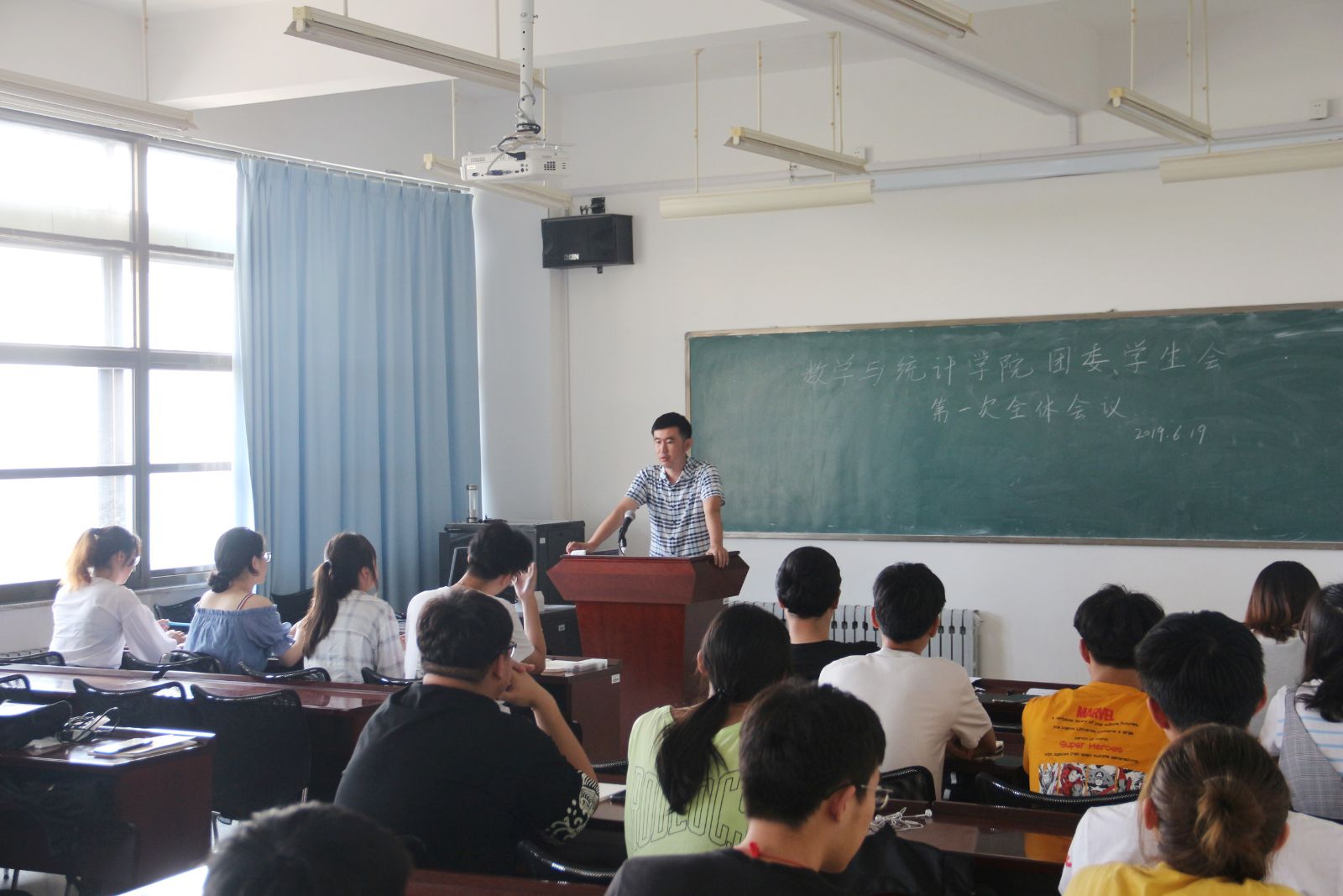 本站讯 6月19日下午,我院于图东环楼304召开团委、学生会第一次全体会议。学院团委书记孙磊,辅导员王祎璠、赵德豪出席本次会议,学院团委与学生会全体成员参加,会议由新任学生会主席魏佳佳主持。