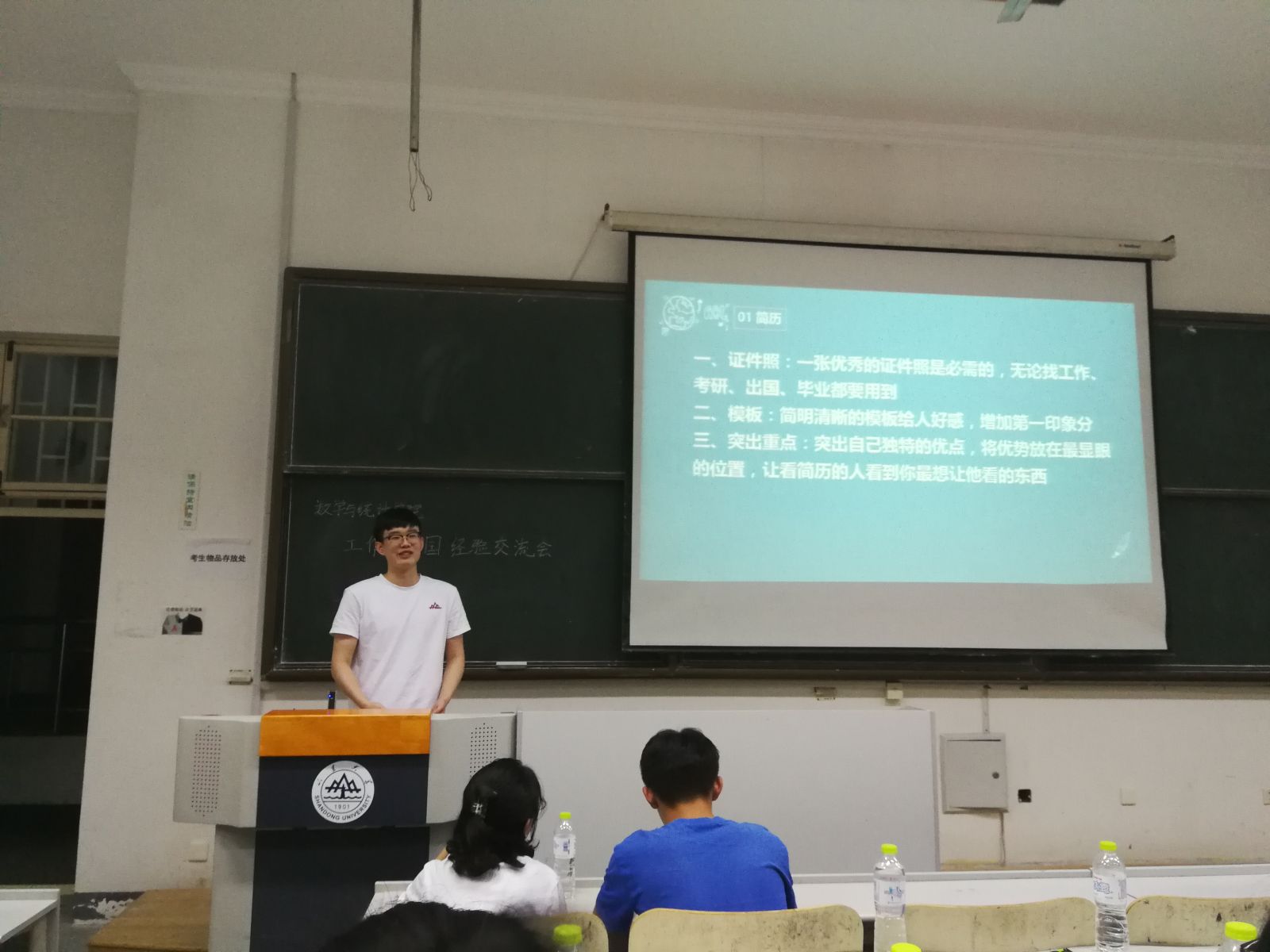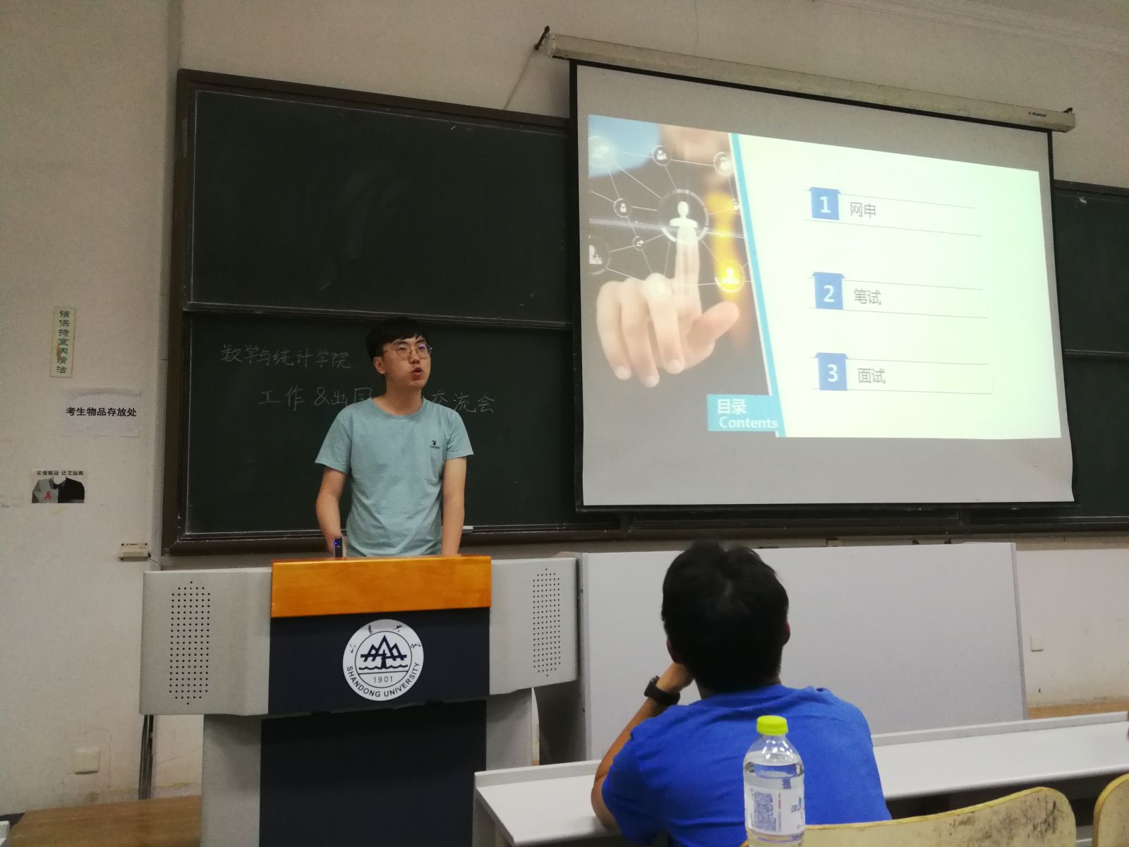 本站讯    2019年5月24日晚19时,我院于图东教学楼126室举办就业与出国经验交流会。本次交流会的主讲嘉宾有来自2015级的孙涵、刑偌菲、侯泽辰、闫欣宇、闫艺和龙晓文。学院对就业与出国感兴趣的同学参加,此次交流会由周冠华主持。