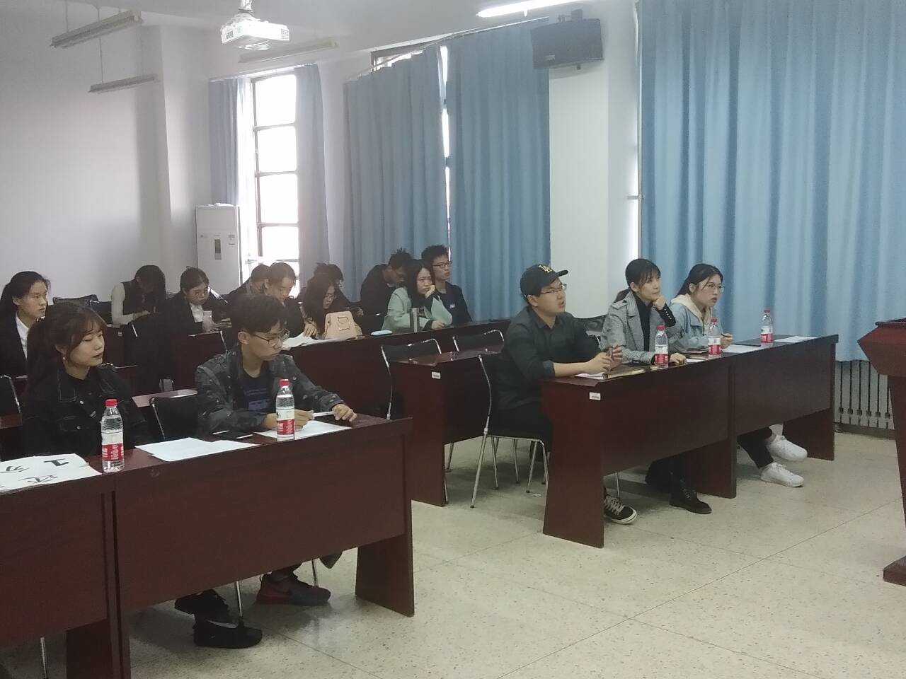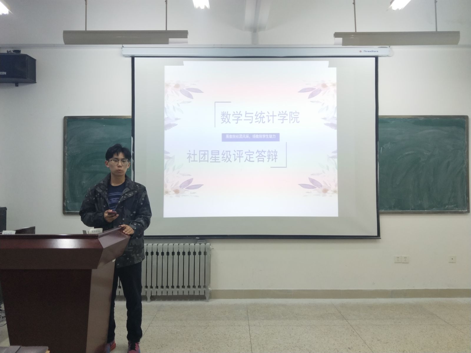 本站讯 2019年4月19日下午,我院于学院304教室组织开展了社团星级评定答辩活动。社团部全体成员,望言辩论社、本科生数学建模协会、统计调研协会与星梦圆协会的主要负责人和干事们到场参加。辅导员王祎璠、赵德豪和学生会秘书长李佳宣出席本次活动。