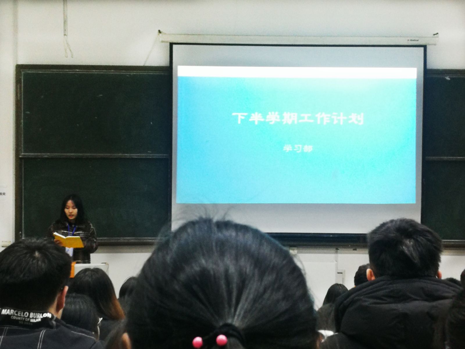 本站讯 2019年3月15日,我院于图东教学楼126室召开第十二届一次学生会第二次全体大会。辅导员赵德豪出席本次大会,学生会全体成员参加大会,会议由秘书处干事许涵嘉主持。