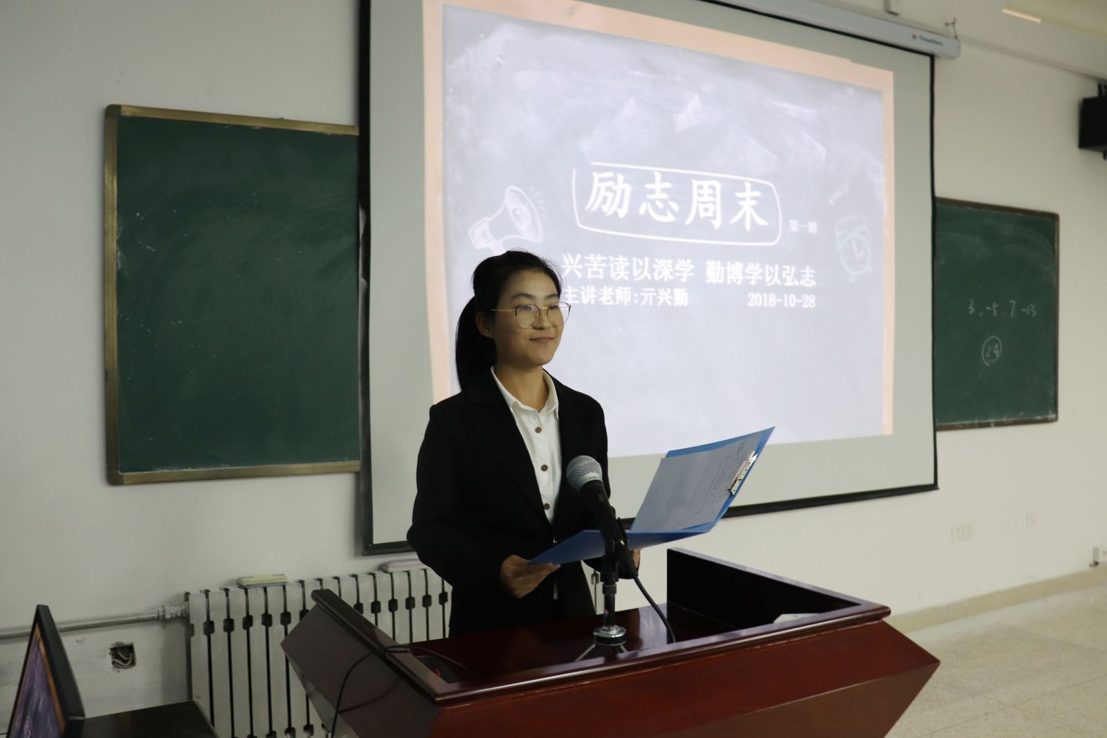 本站讯 10月28日下午,我院“励志周末”讲坛第一期于图东环楼304室拉开帷幕。该活动旨在搭建平台,邀请学院教师、优秀校友和在校生分享经历感悟,助力数学专业学生专业技能提升和未来职业规划。本次讲座邀请学院亓兴勤教授担任主讲嘉宾,学院党委副书记王鹏飞出席活动,学院部分学生听取了讲座。
